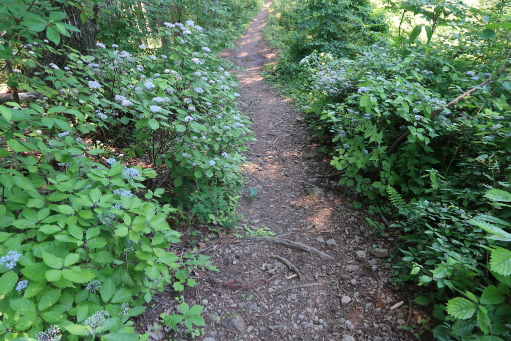 登山コースが山頂を巻いていることと、アクセスしずらい場所にあるためか、訪れる人はそれほど多くないようですが、麻生山から日の出山までのルート上にたくさんアジサイの木を見かけたので、満開のシーズンには素晴らしい花道が期待できそうです。
