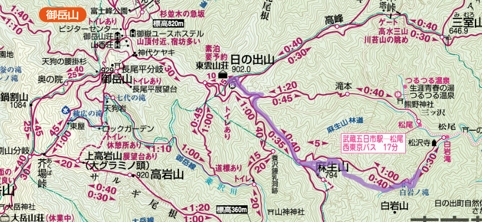 山域は青梅市にまたがりますが、山頂は東京都西多摩郡日の出町になります。