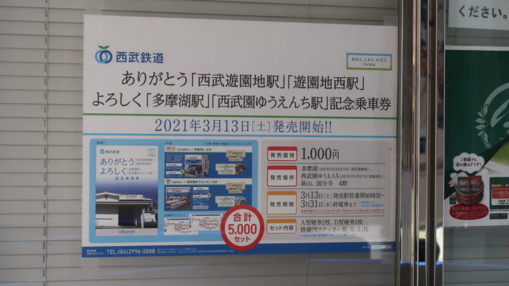 西武遊園地のリニューアルオープンに先駆け、「西武遊園地」「遊園地西」は、2021年3月13日より「多摩湖」「西武園ゆうえんち」に変更となりました。