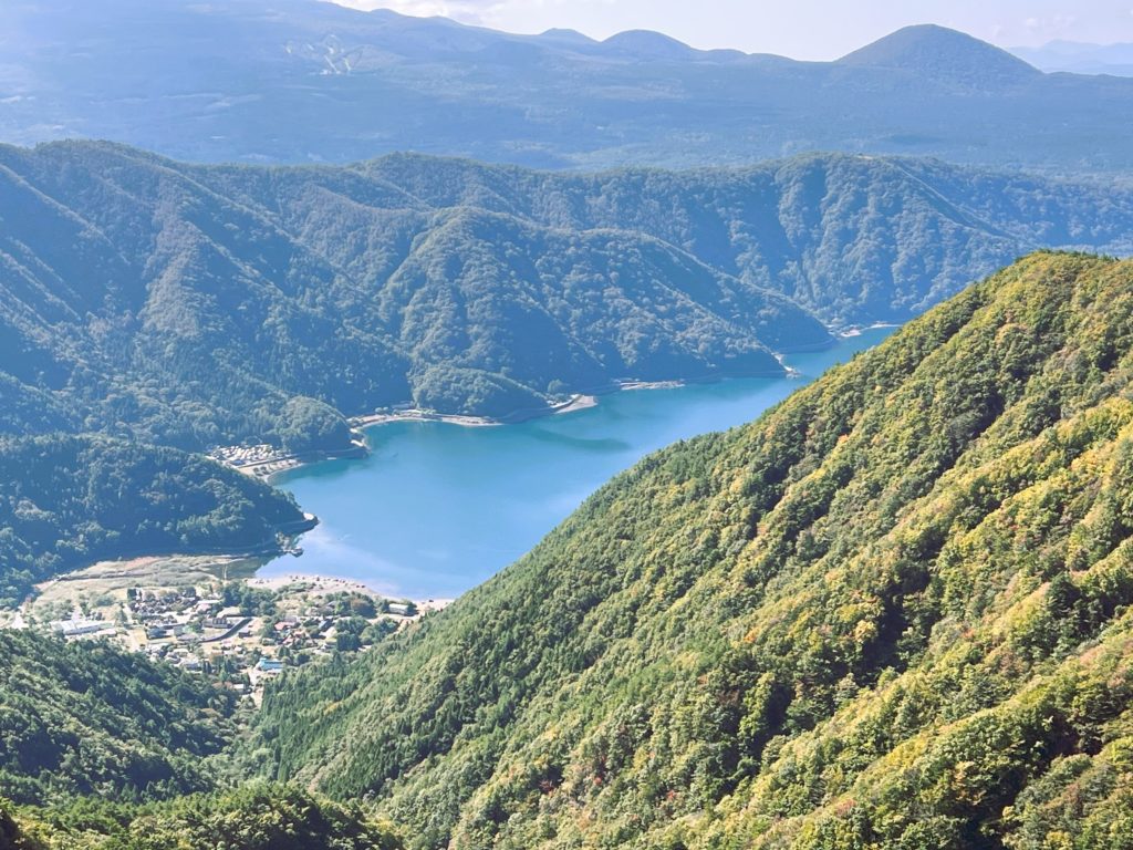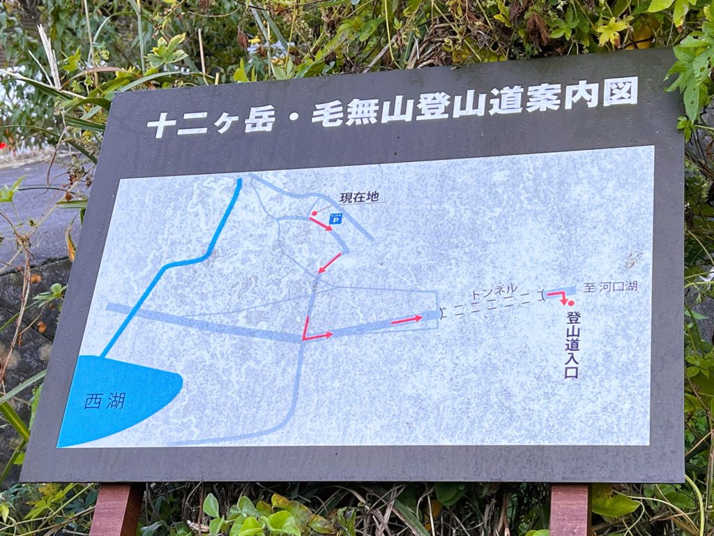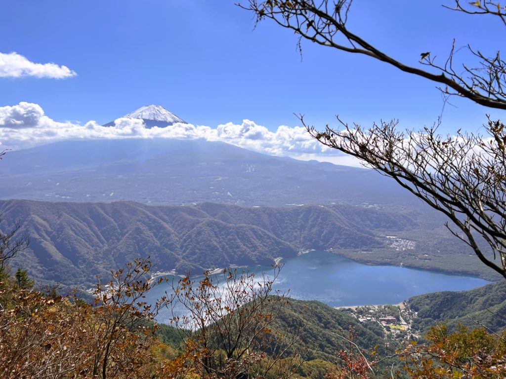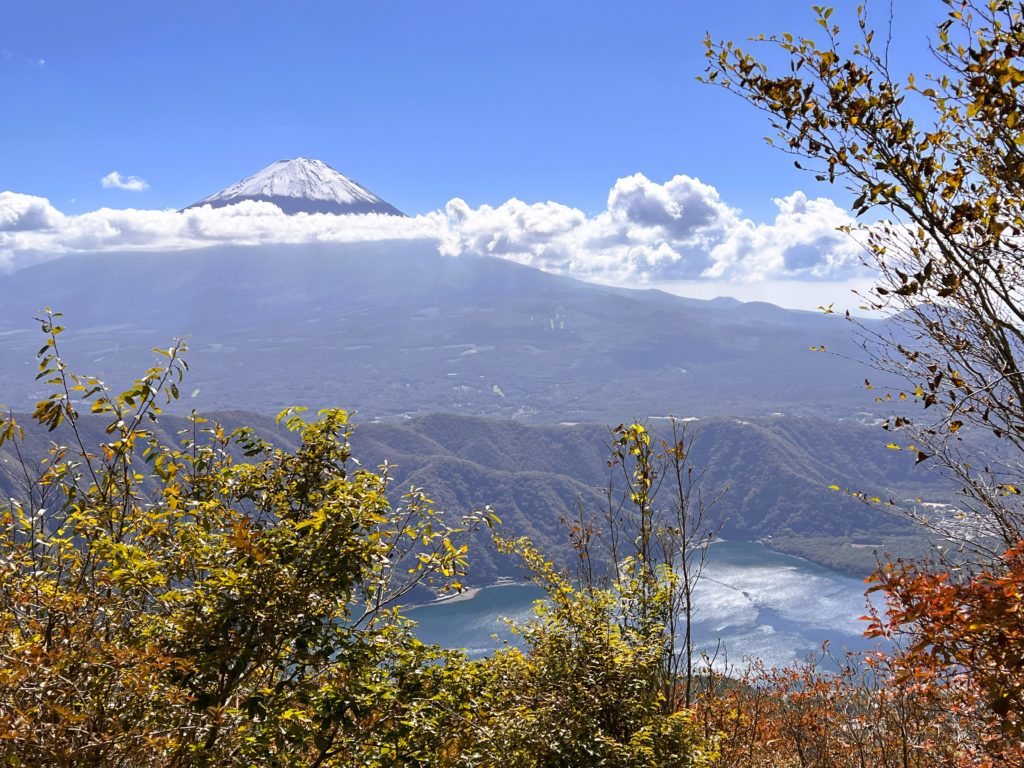 この周辺には「毛無山」という名前の山がいくつかありますが、こちらは標高1,500mの「毛無山」。河口湖と西湖のちょうど間に位置しており、両方の湖を同時に望むことができます。