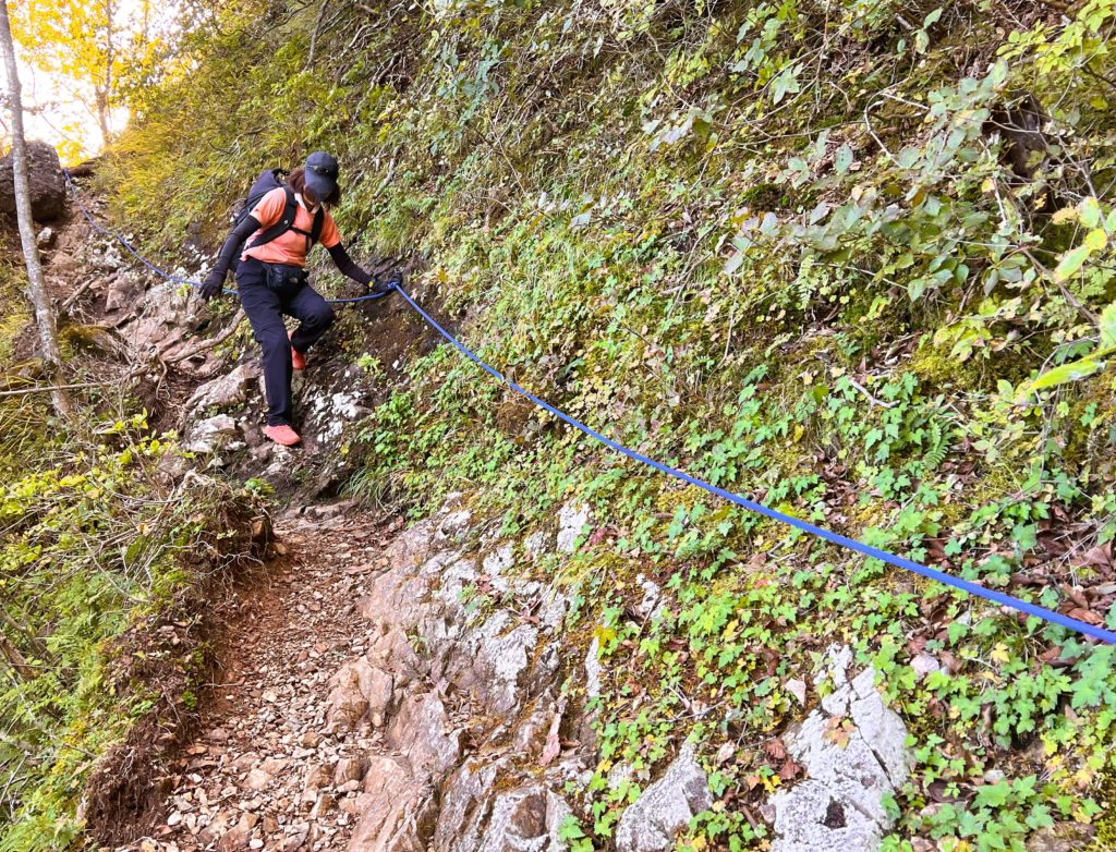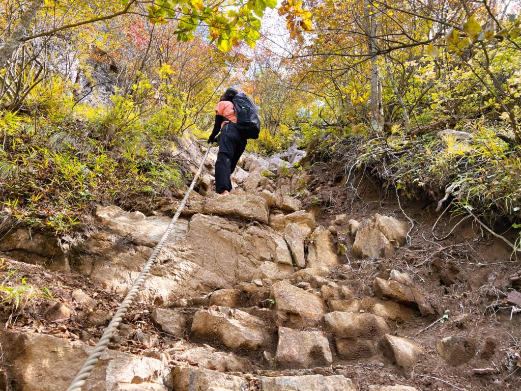 登ったり下ったりを繰り返し、クサリ場・ロープの険しい岩場が続く上級者向けのコースです。