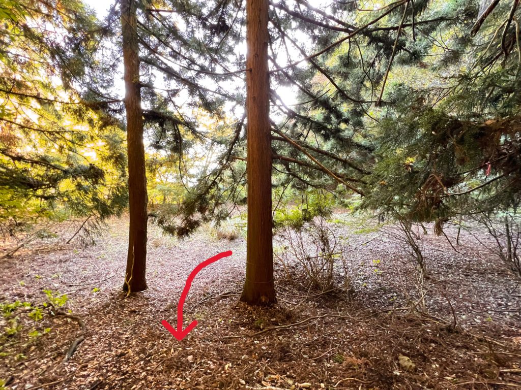 なんとなくですが…この2本の大きな木の間を通って行く感じですかね(;^ω^)