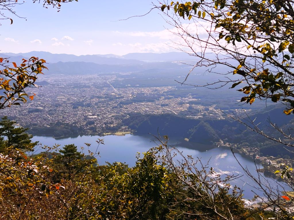 山頂からの眺望は素晴らしく、目の前に広がる富士山と西湖のコラボレーションに感動!