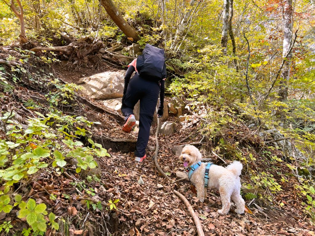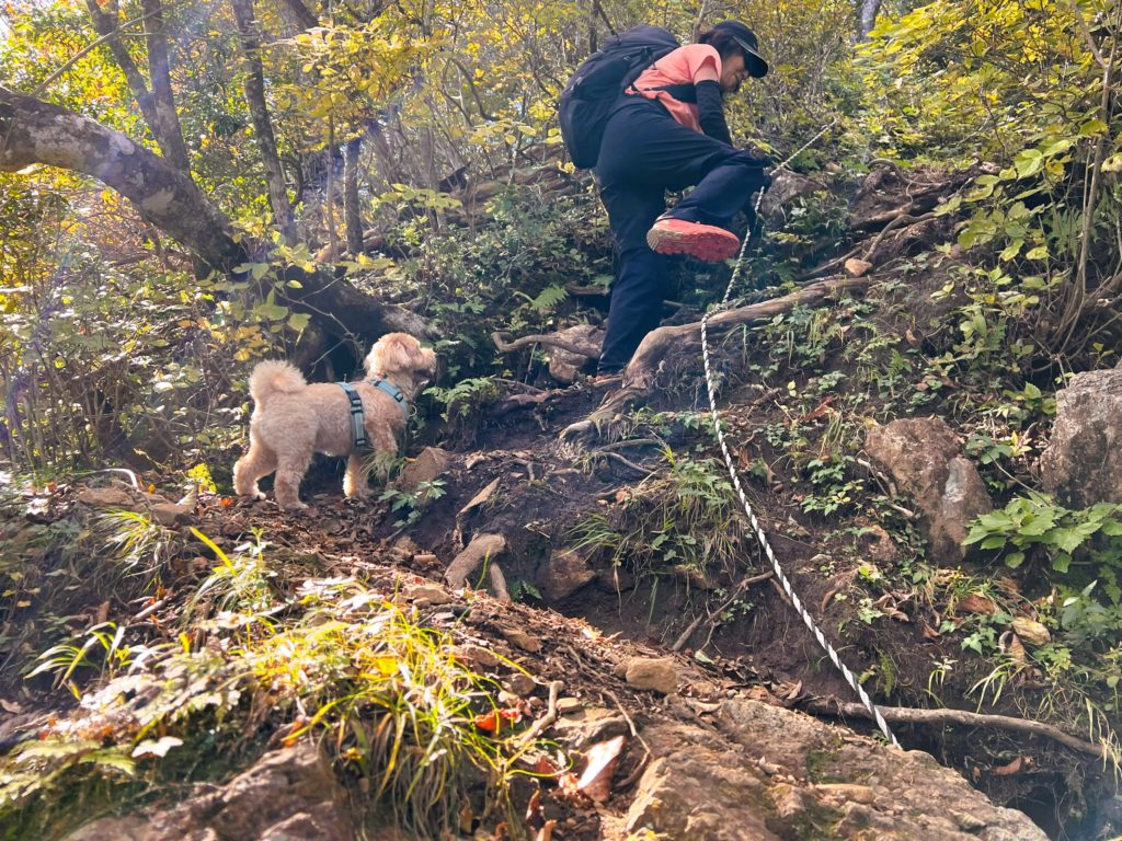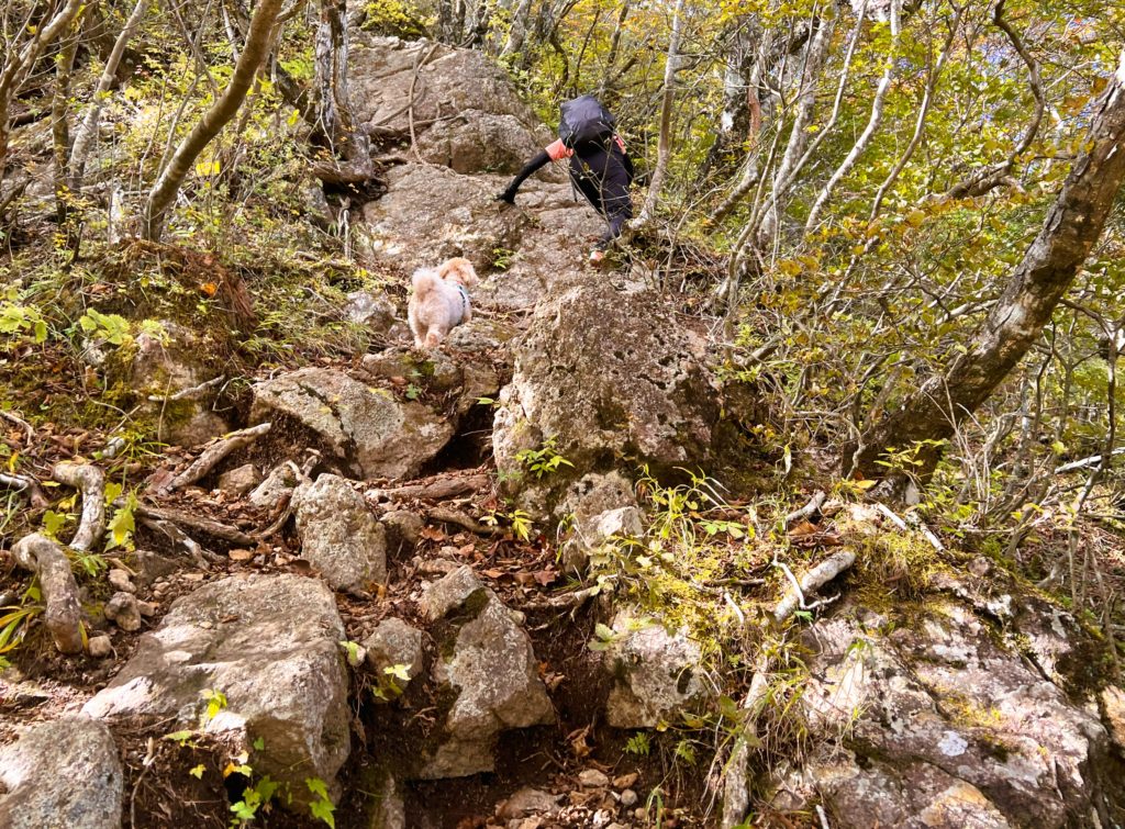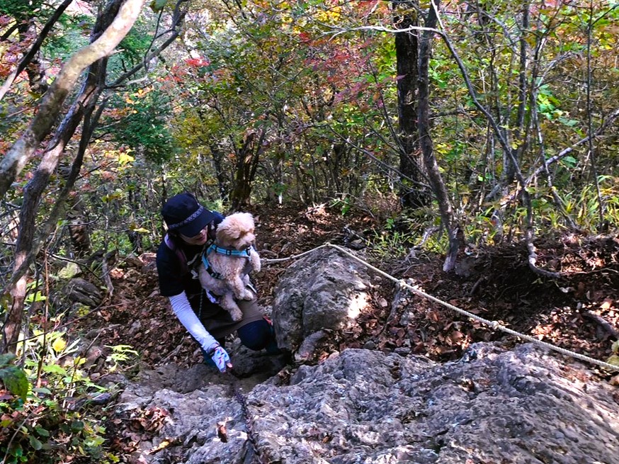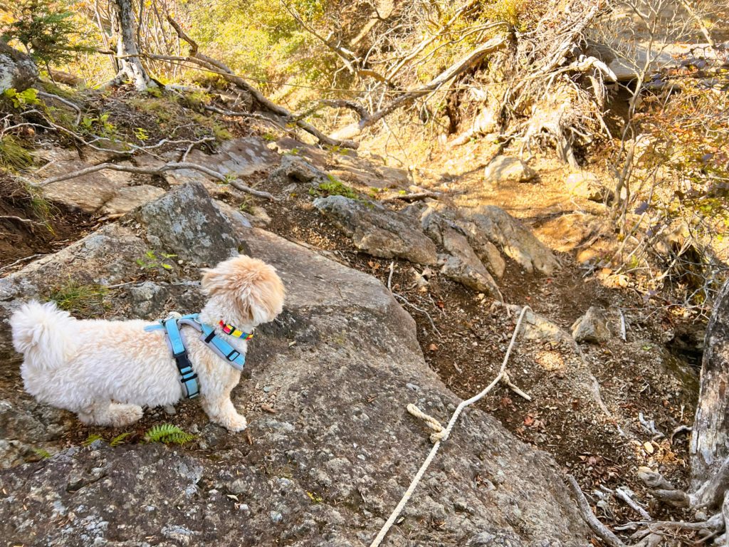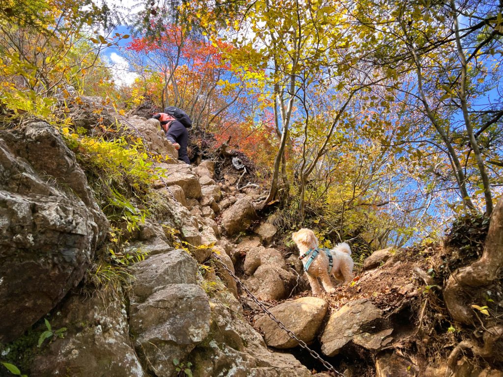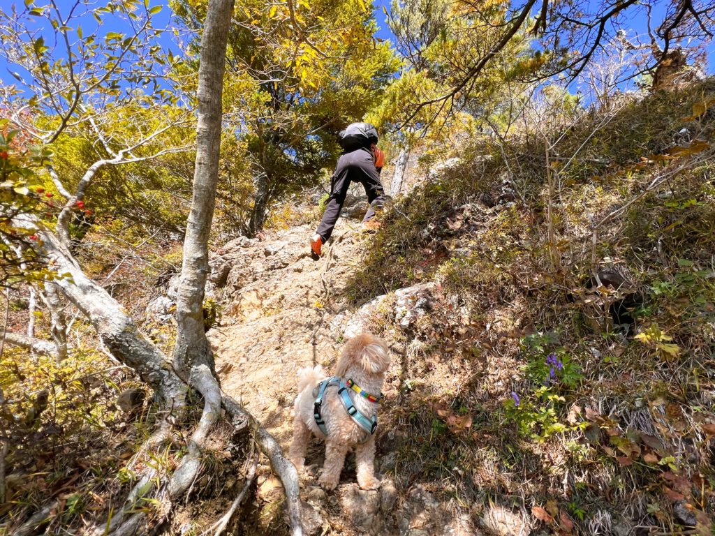 「桑留尾」から直登ルートもありますが、ハシゴがあるので、どちらにしても犬連れはちょっと厳しいかなと思います。