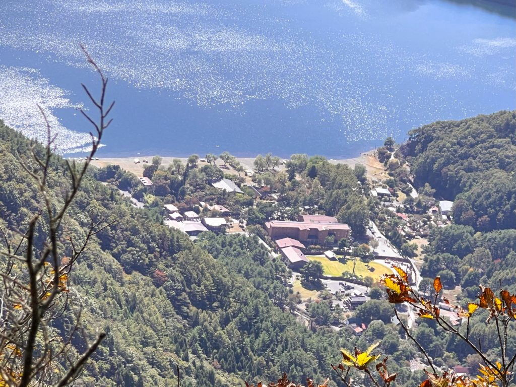 眼下には、本日宿泊する「西湖自由キャンプ場」が見えています。