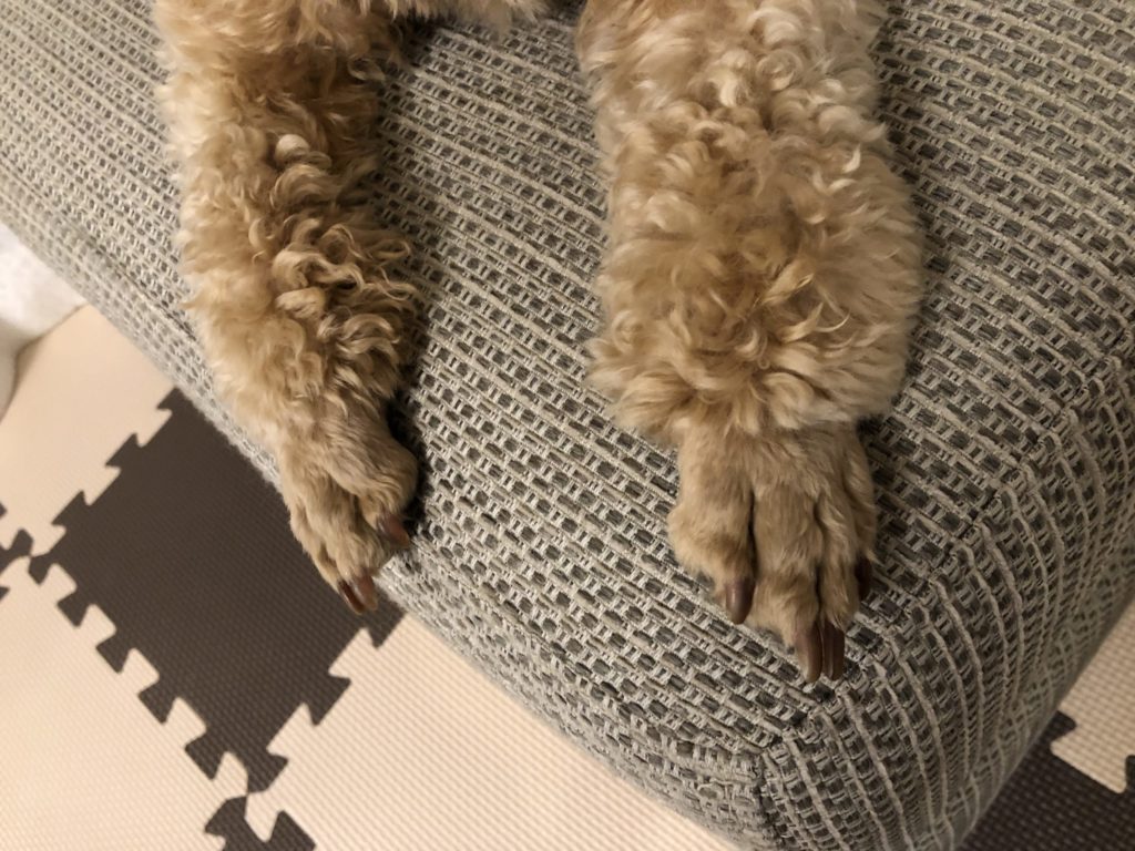 個人的には長毛のボサボサスタイルが好きだったのですが、エルモの場合プードル系なのでどうしても毛玉ができやすく、2ヶ月もするとブラッシングが行き届かない脇の部分や、グルーミングを嫌がる前足、シッポなどに毛玉ができてしまいます。