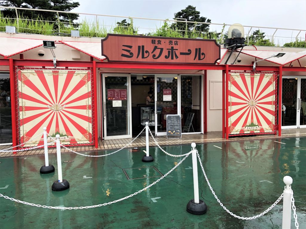 場所は、観覧車のさらに奥側。プールの横くらいの位置にあります。