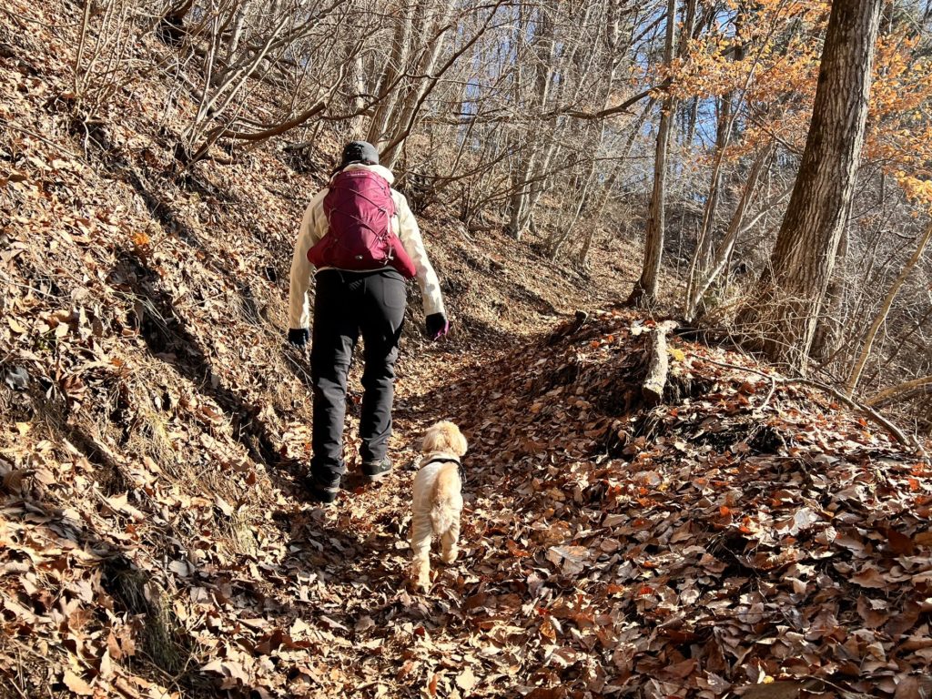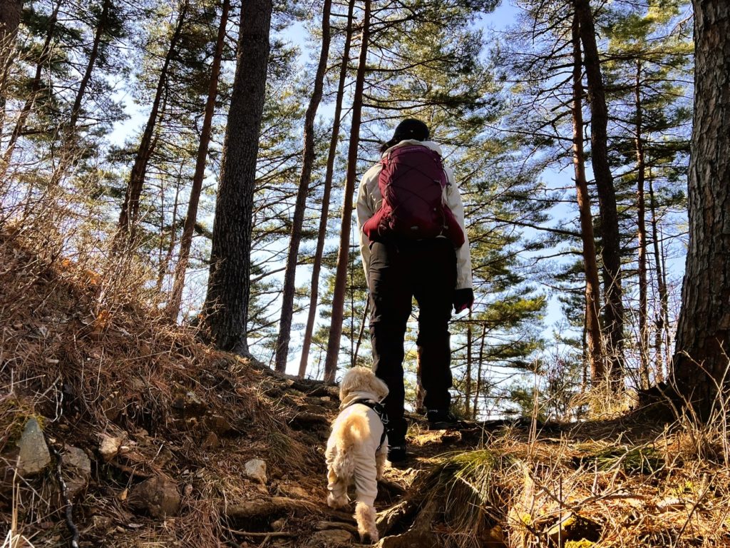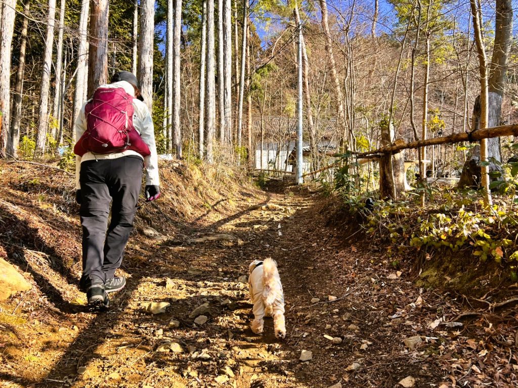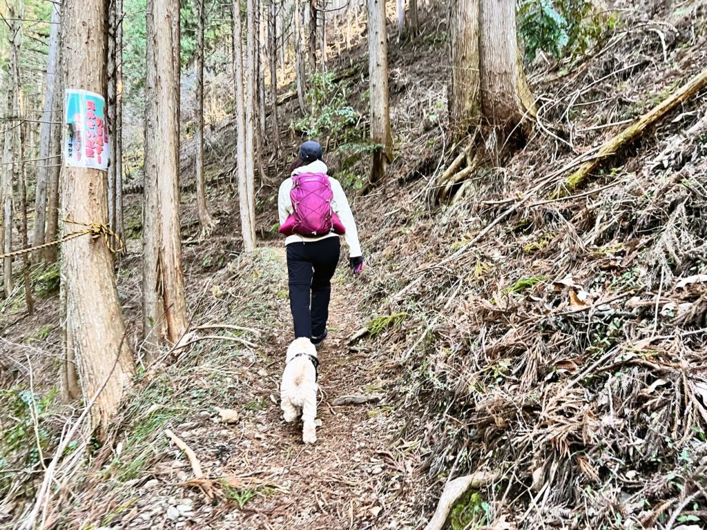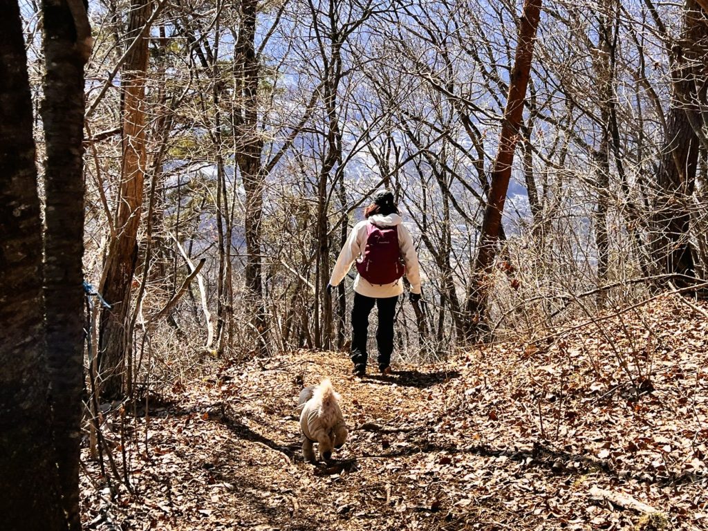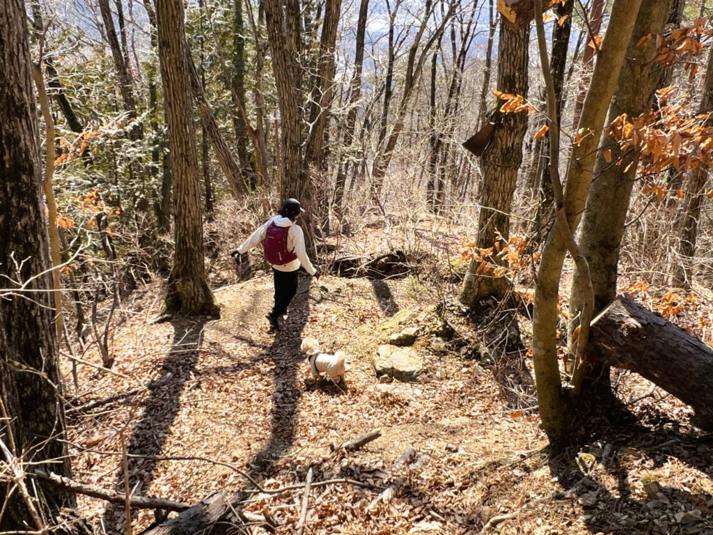 山頂までは1時間30分ほど。半分くらい舗装された道を歩きますが、登山道に入ると急な上り下りもあり、しっかり登山も楽しめます。