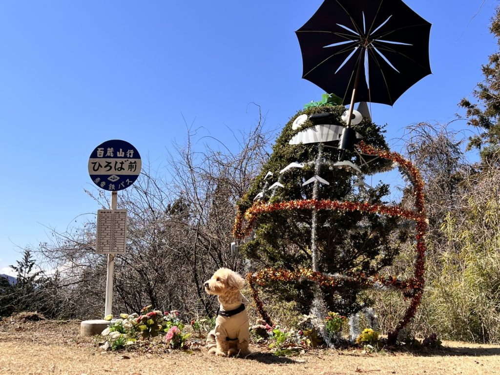 駐車場から800mほど急な坂道を上がった先で、今話題の『バス待ちトトロ』がお出迎えしてくれます。
