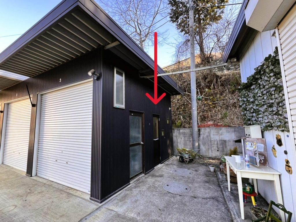 「ふもといれ」は、道を挟んだ向かい側の民家にある