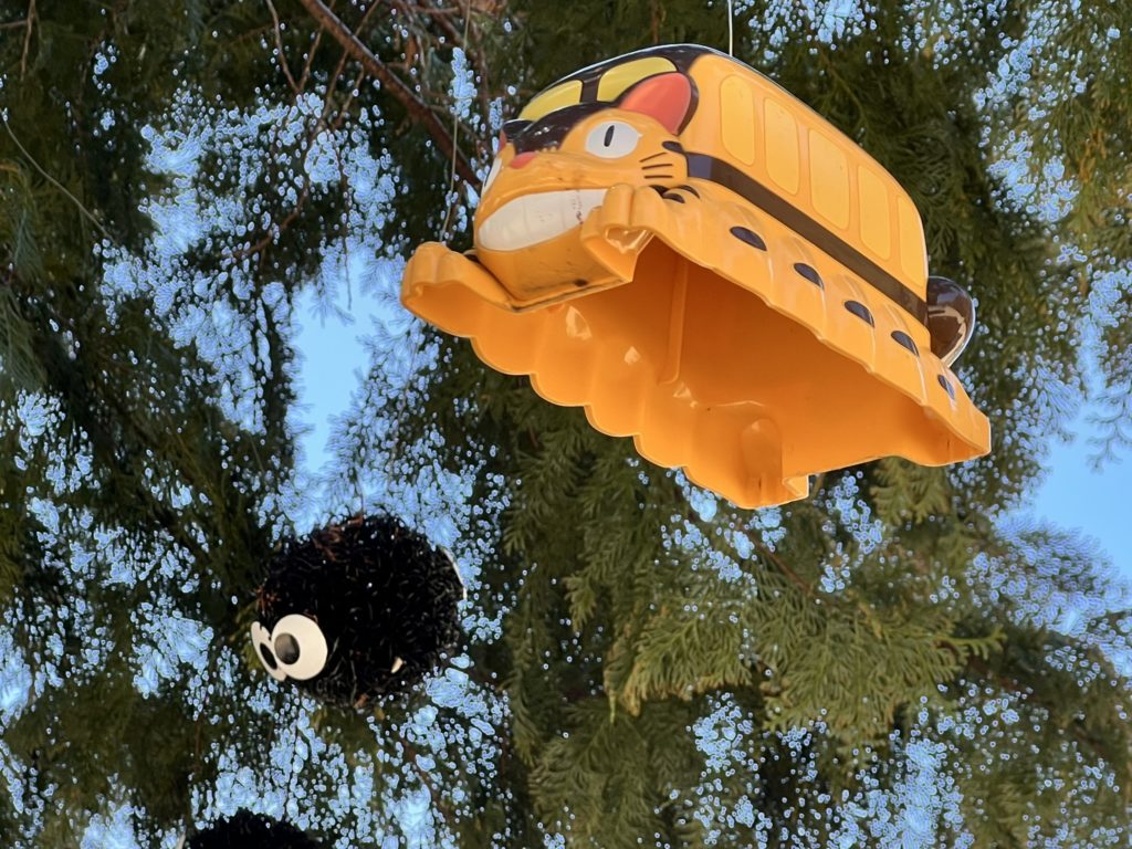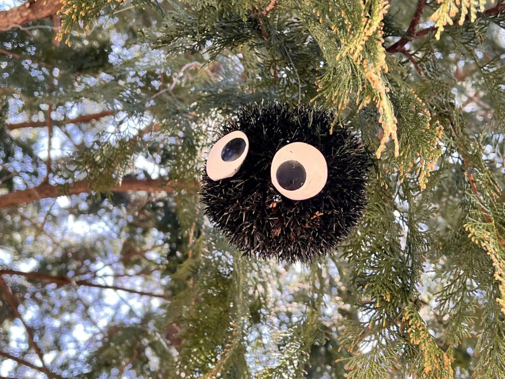 舗装路沿いの大きな木に、さりげなく吊るされた登場キャラクター達♬