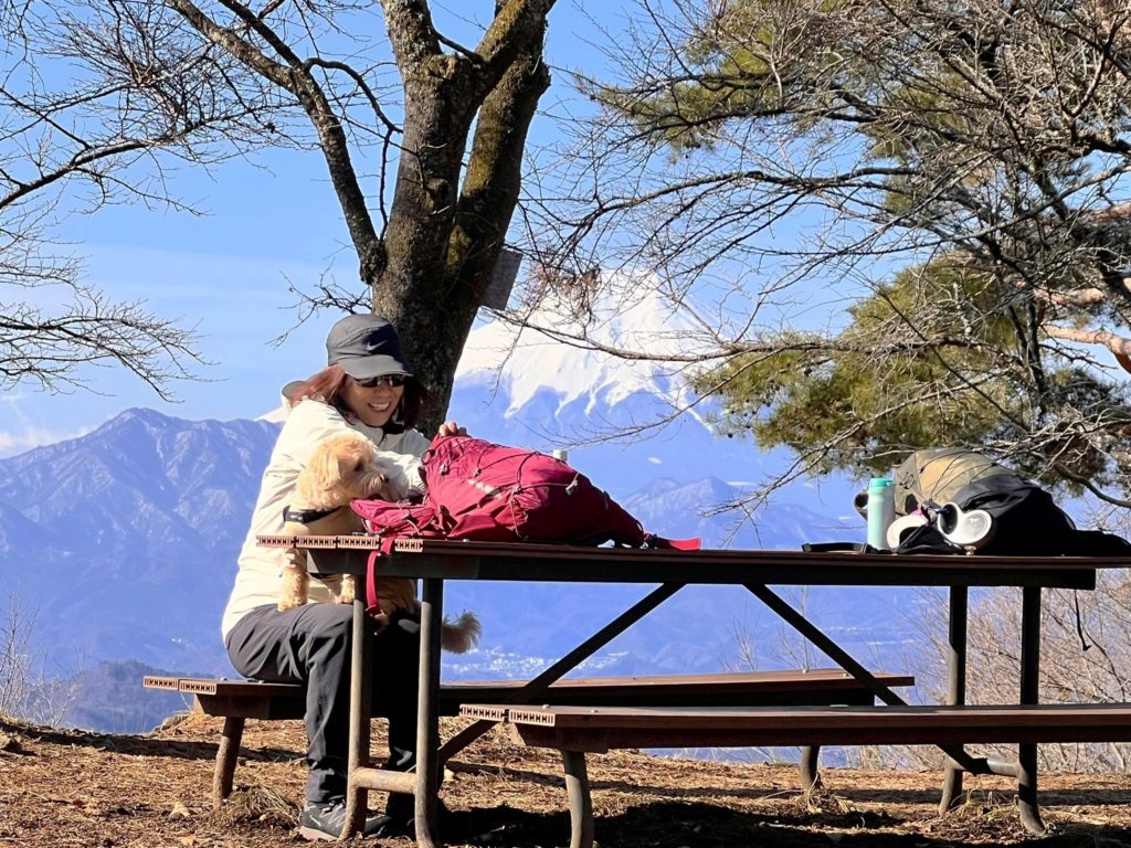週末はかなり混み合う人気の山頂ですが、この時は誰もいなかったので、ラッキーなことにテーブルを利用することができました(^^)
