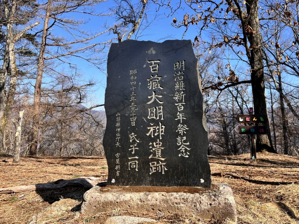 その昔、百蔵山の山頂には「百蔵大明神」が鎮座されていました。