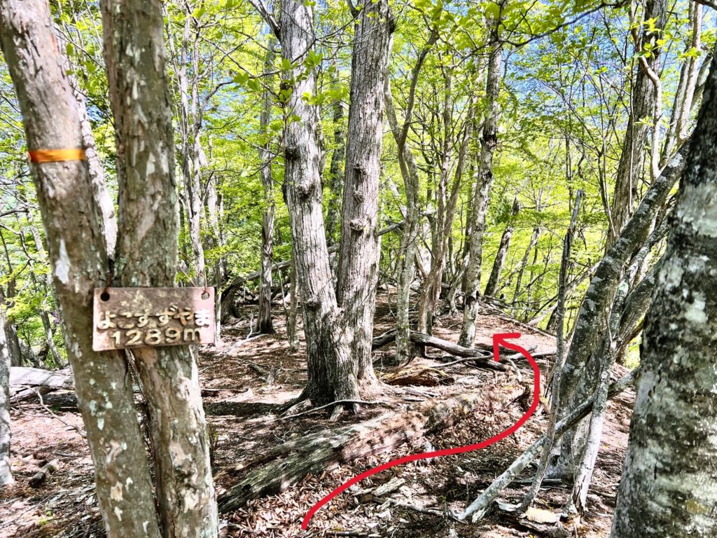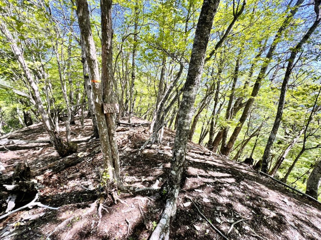 標高1,289m。「山と高原地図」には山名の記載がない山です。