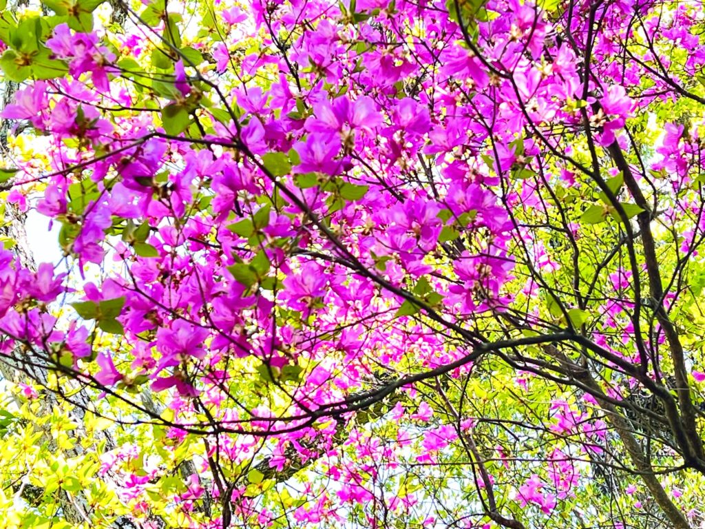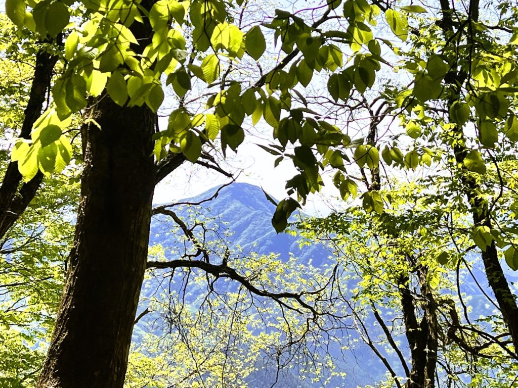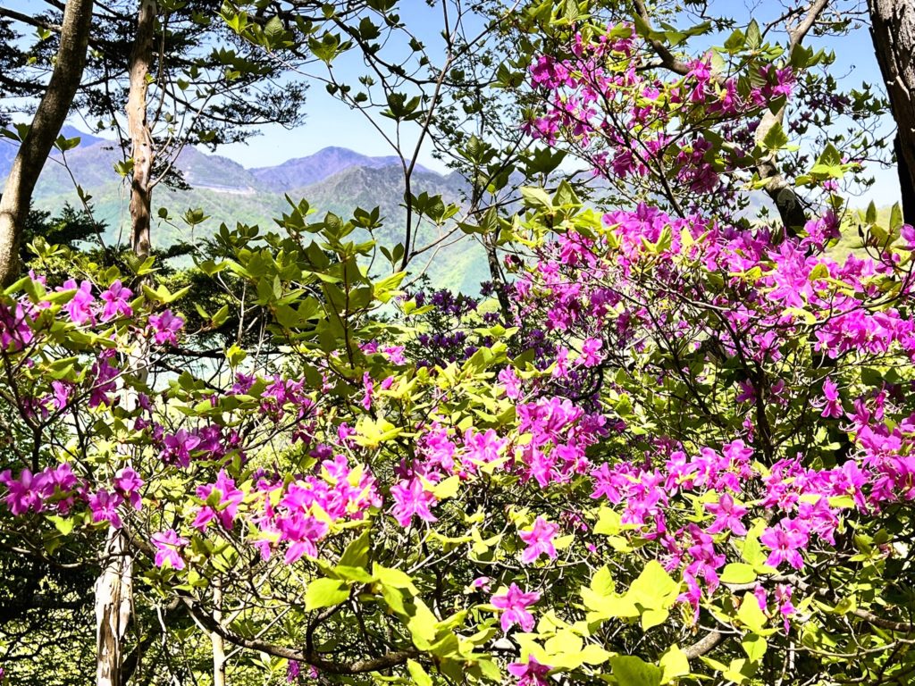 杉並木が終わったころから、鮮やかな新緑とミツバツツジに彩られ、山全体がパーッと明るくなってきました。
