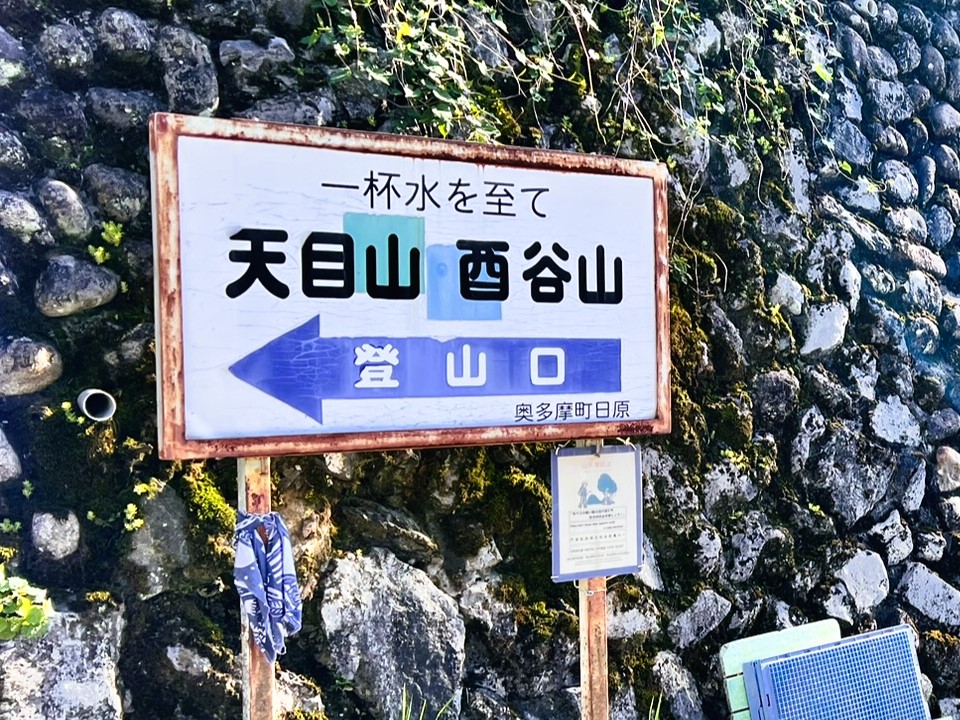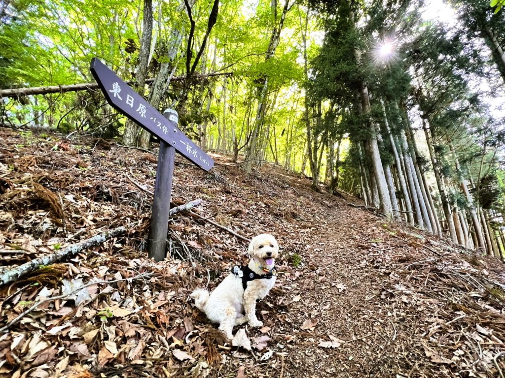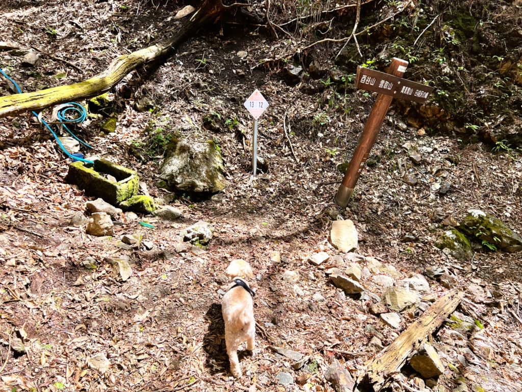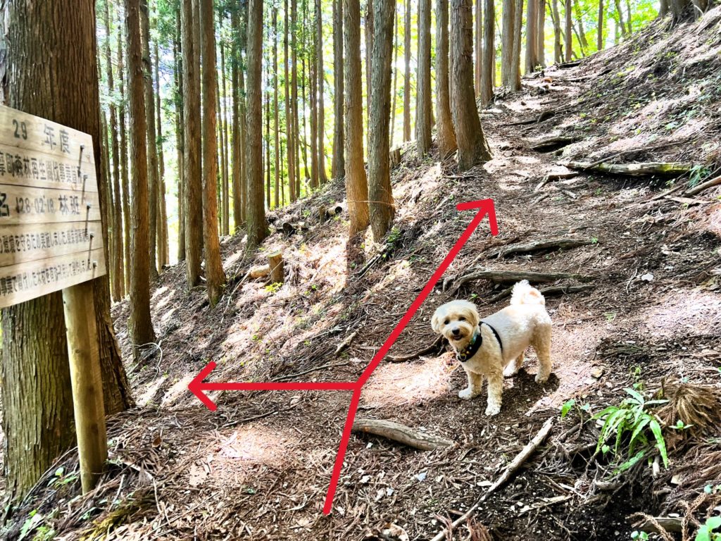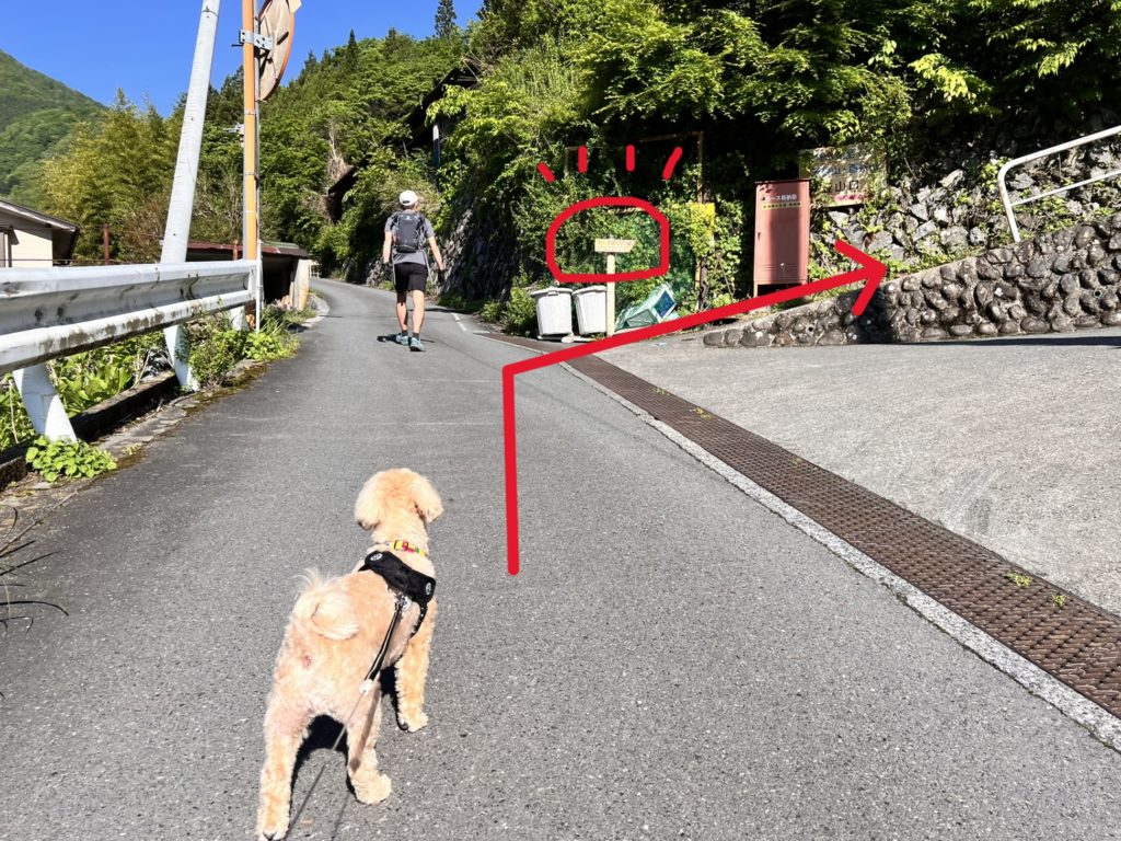 「途中に登山道へ入る案内板があるよ」と、教えてくれました。