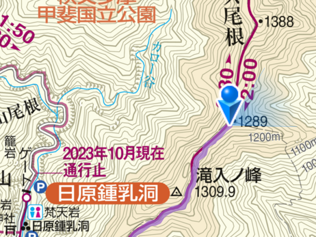 「日原鍾乳洞臨時駐車場」より山頂までは、3時間ほどかかる登りごたえのあるコースです。