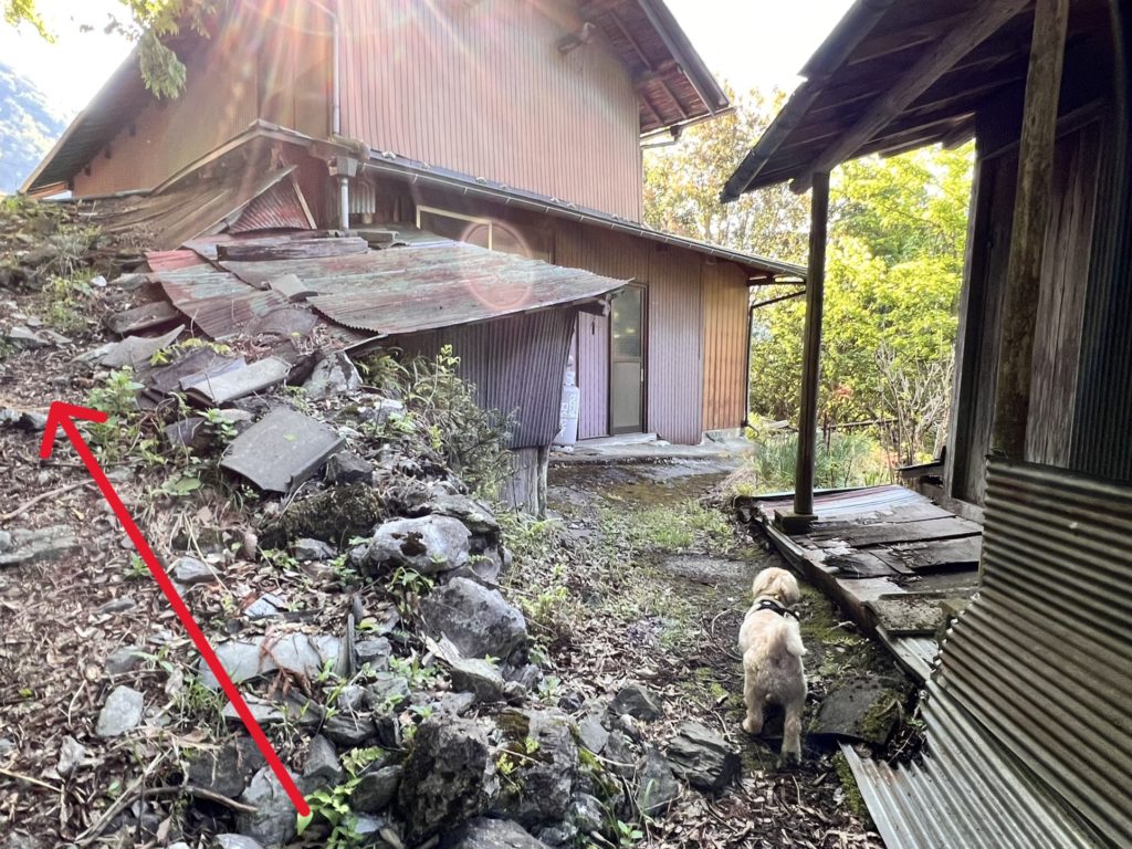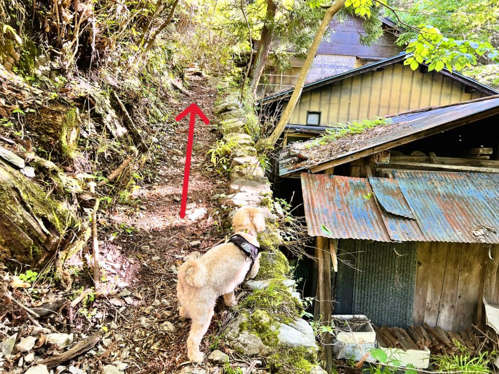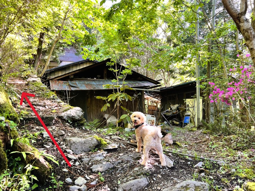 細い登山道を進んで行くと、家がありました。