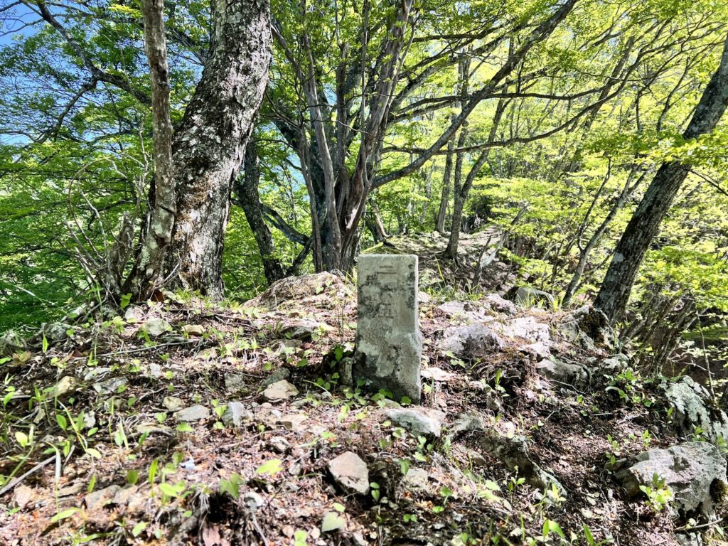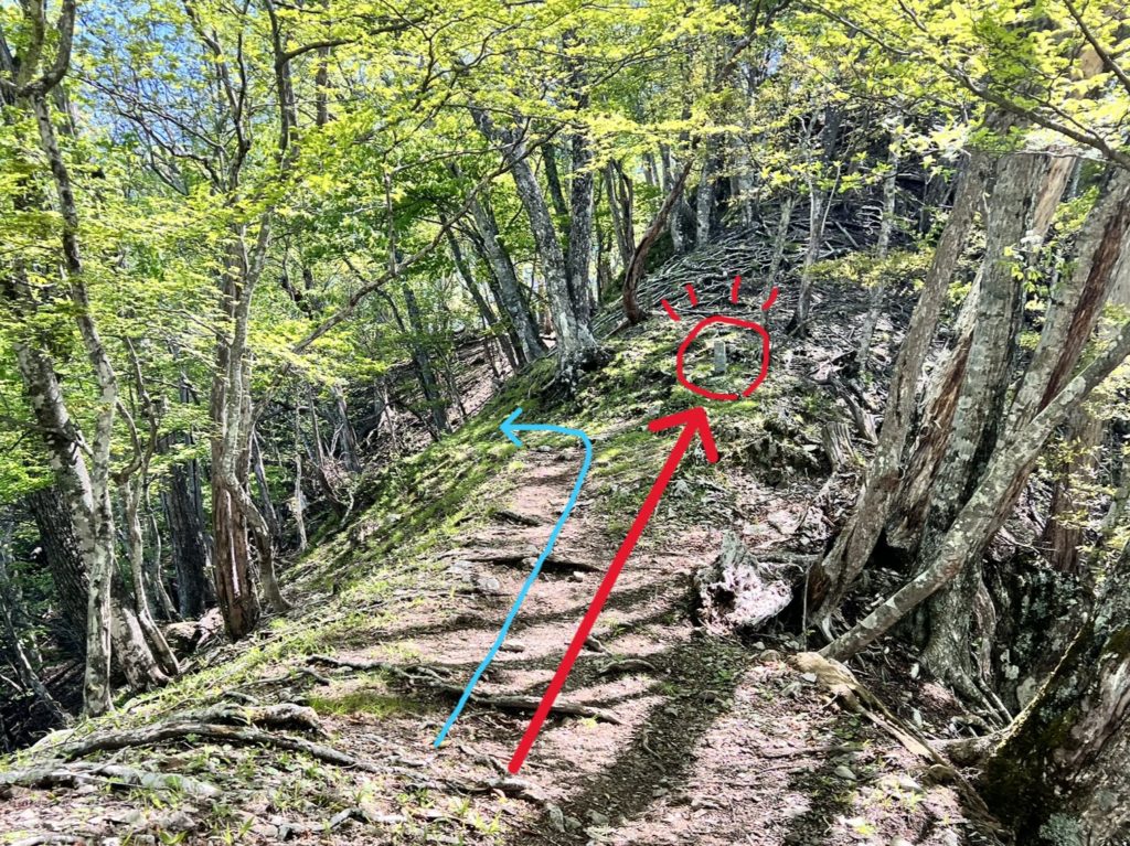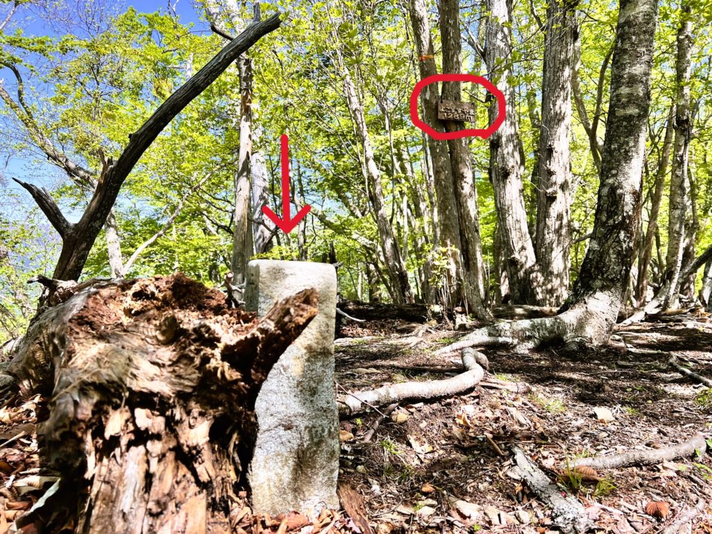 少し進むと登山道の真ん中に「標石」があります。