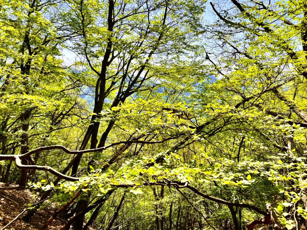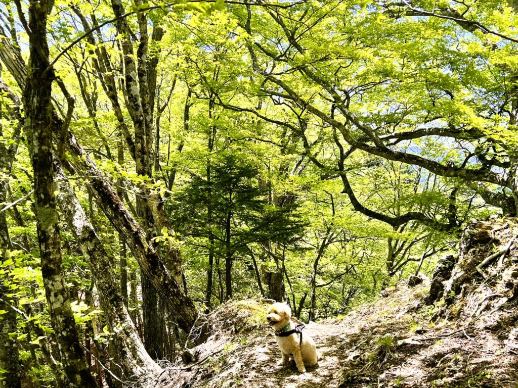 でも、新緑たっぷりのおかげで登山道にも木陰ができて涼しく、なんとかクリア♪