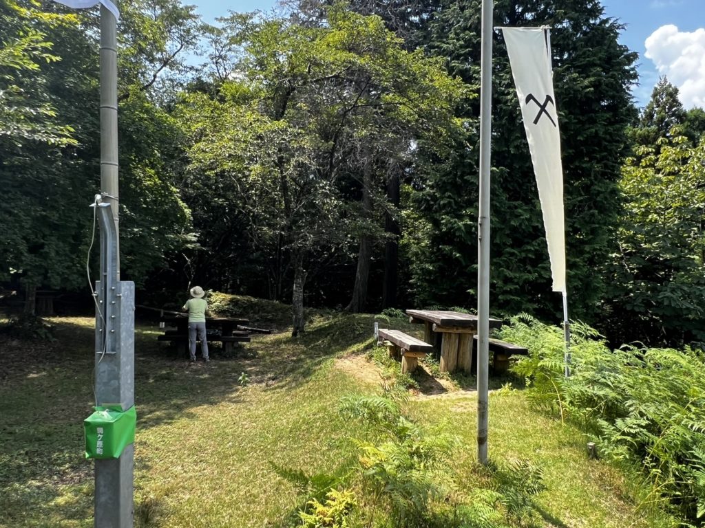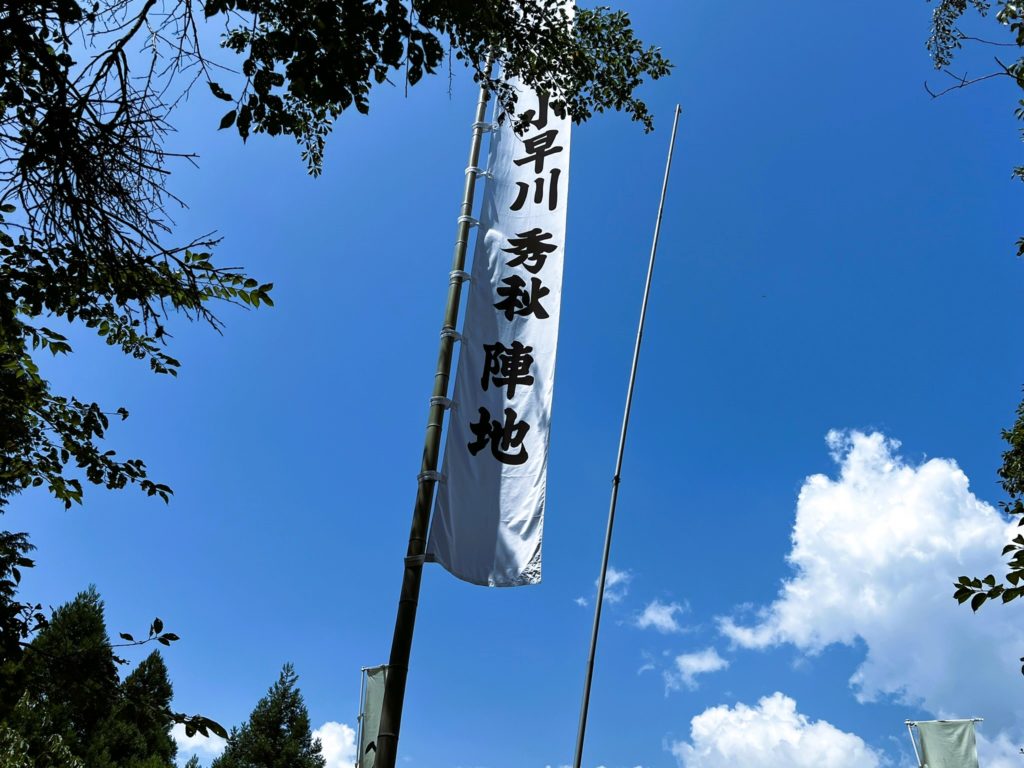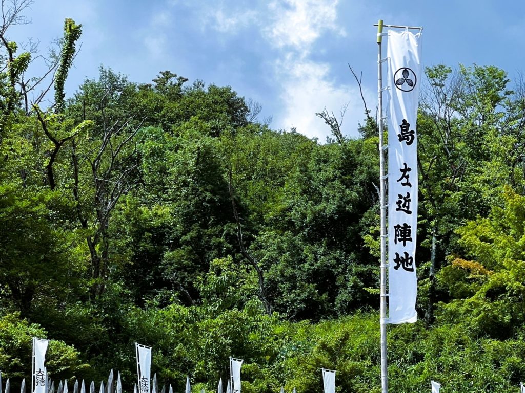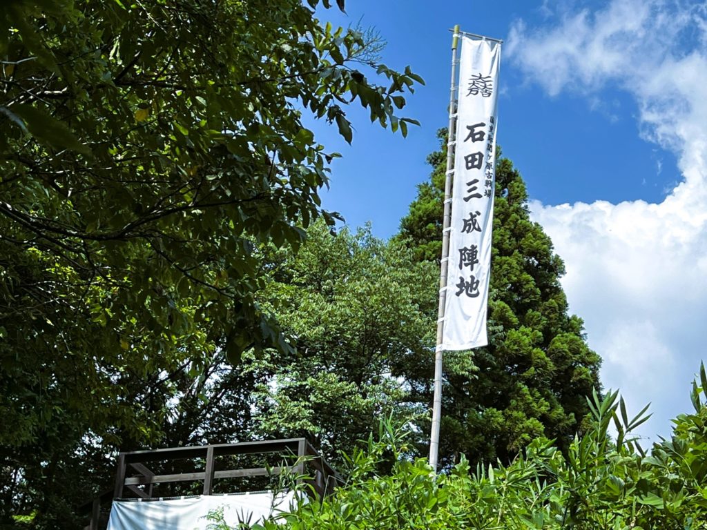 ひたすら階段を登っていくと、見えてきました「石田三成陣地」のぼり。