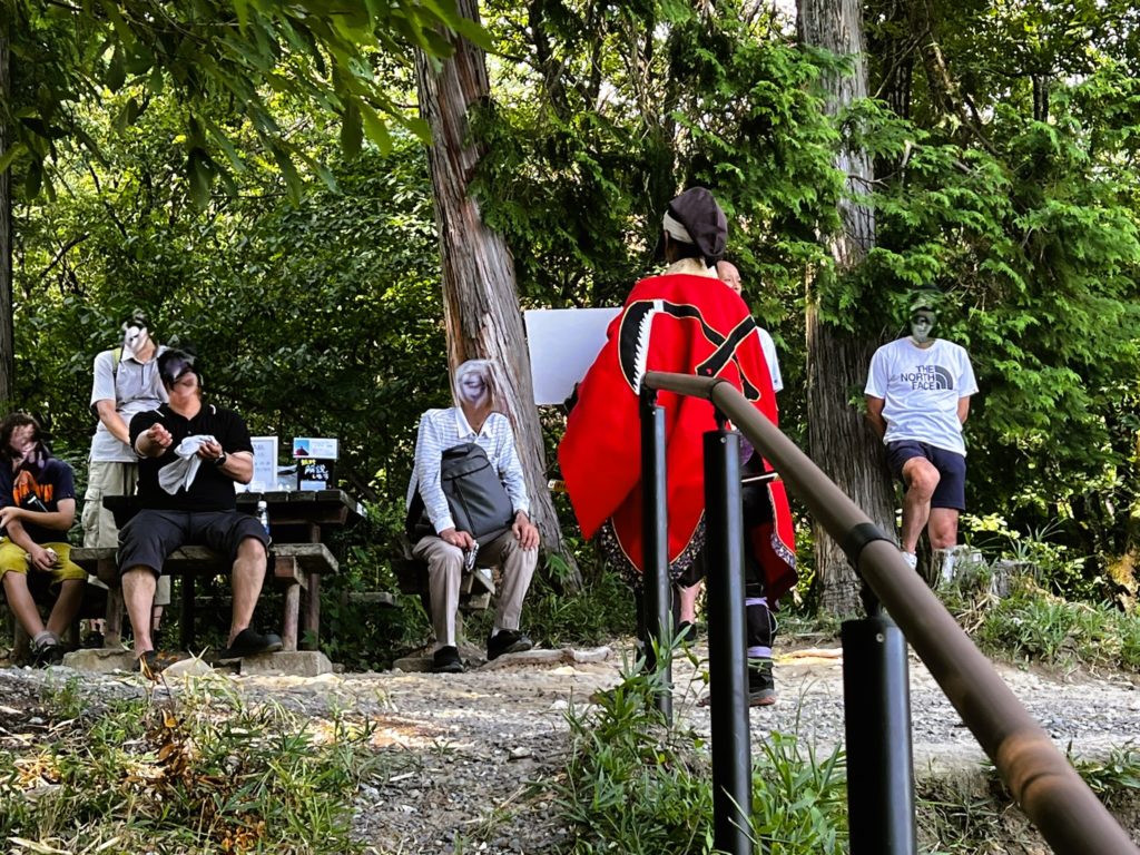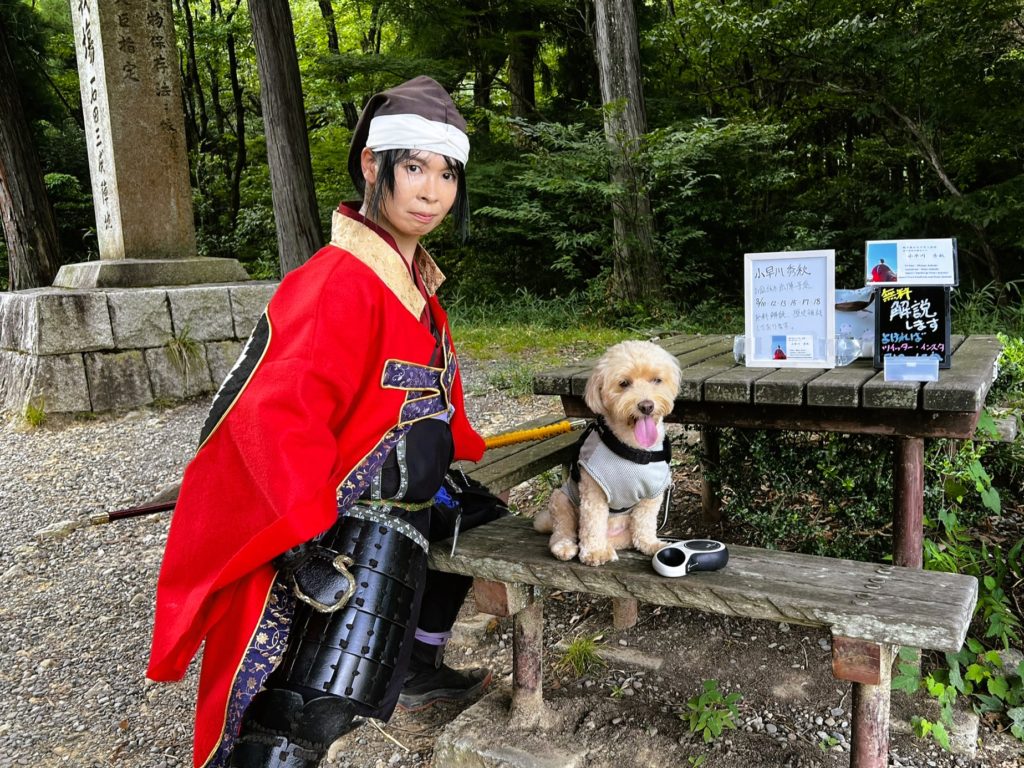 登り切った先には、なにやら武将スタイルのお姉さんが、熱心にお話ししている姿がありました。