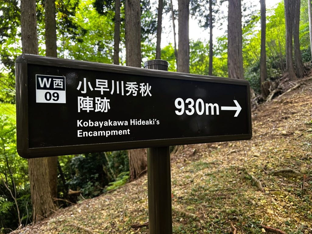 「小早川秀秋陣跡」までは1.6km 寄り道なしで約40分とのこと。