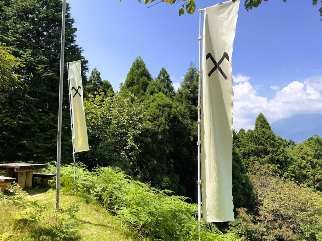登山口には「島 左近(しま さこん)」の旗が立っていますね。