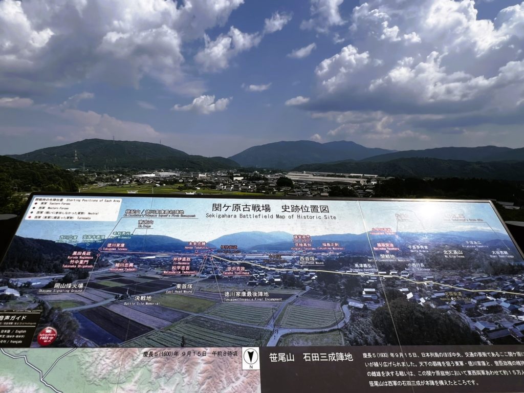 山頂からは関ケ原を一望できる眺望が広がり、「石田三成」の陣地も良く見えます。