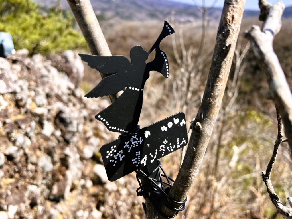 天使の描かれた看板や、ミニサイズですが北アルプスの本家そっくりのオブジェもありました。