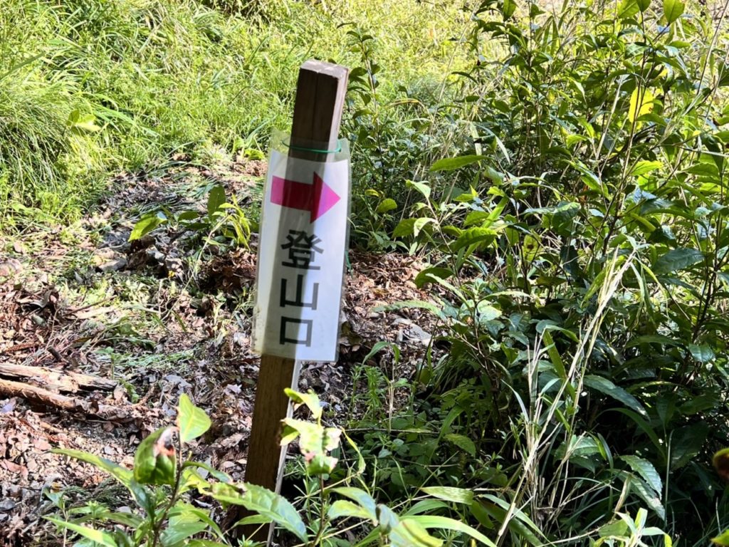 「登山口」への案内板を過ぎて、少し進むと民家が見えてきました。