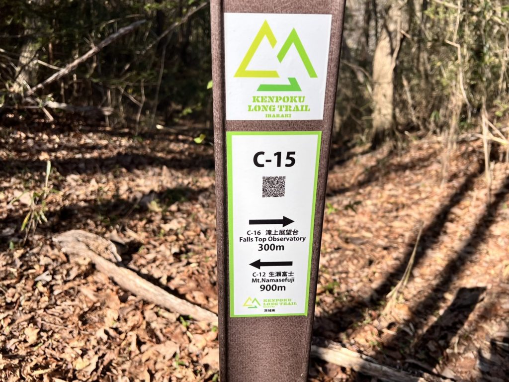 標高365m「C-11」地点は「月待の滝」から続くロングコースとの合流点です。