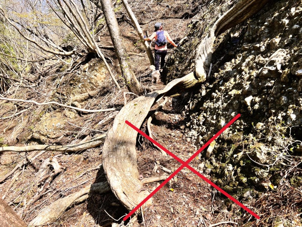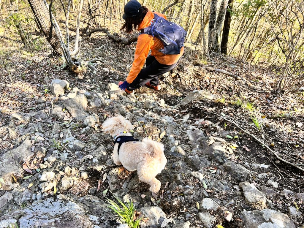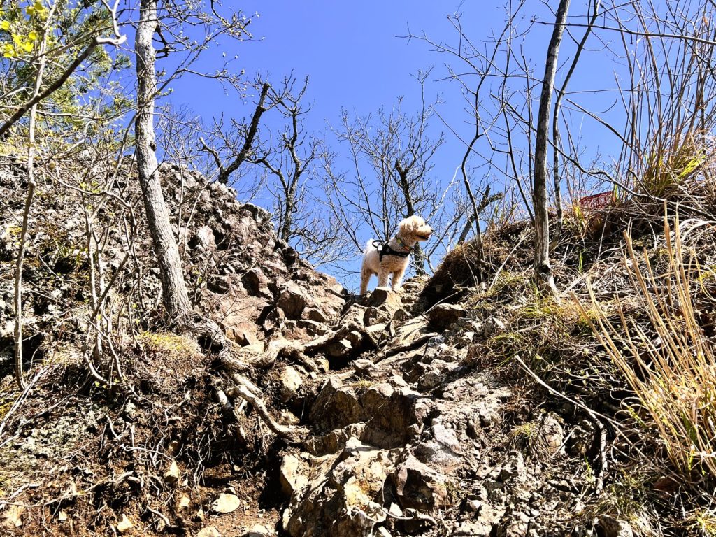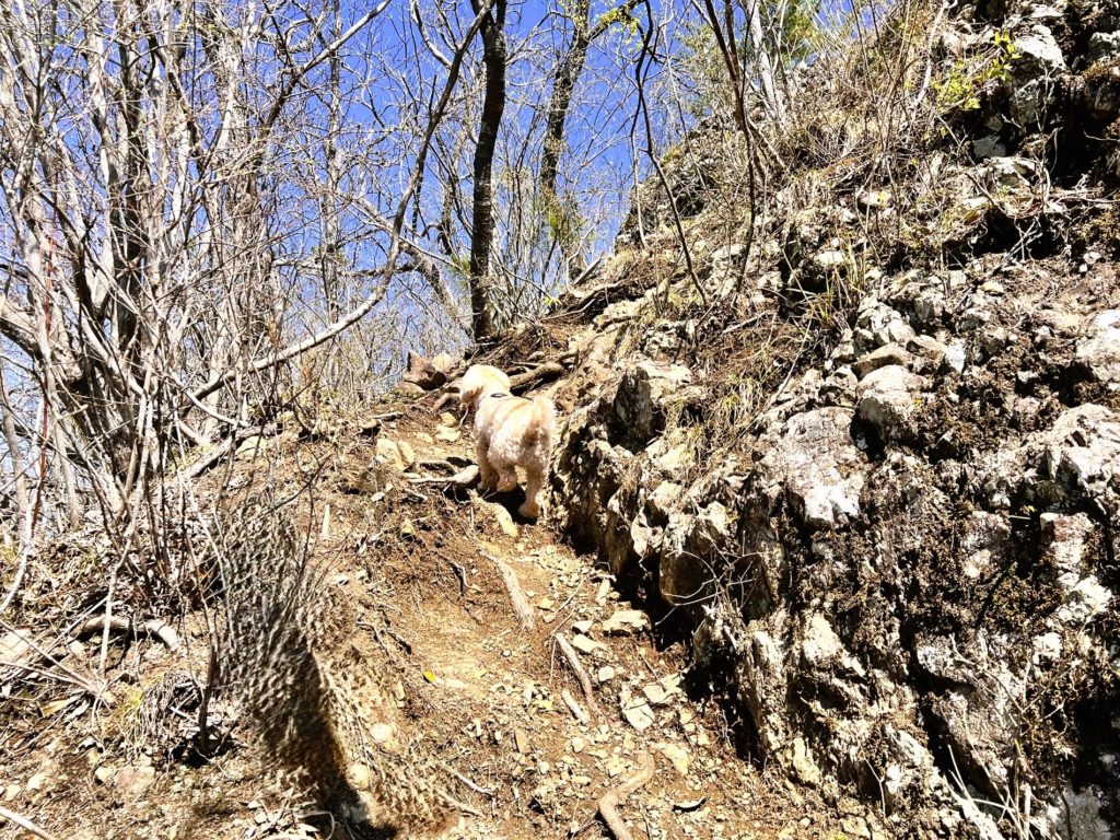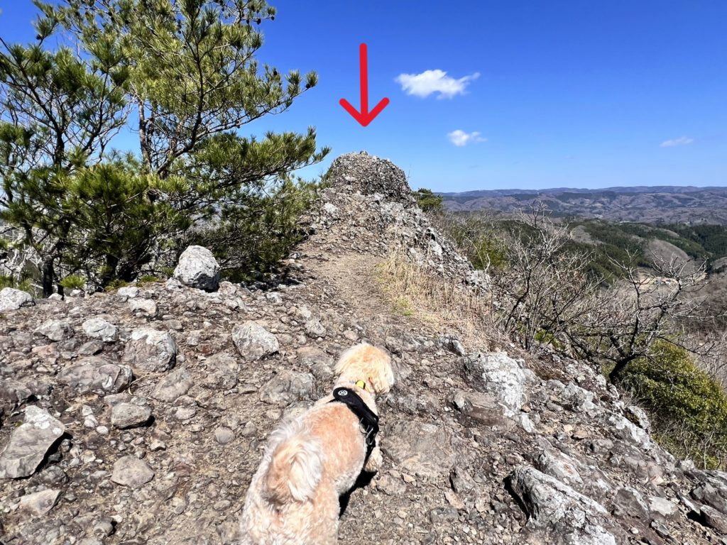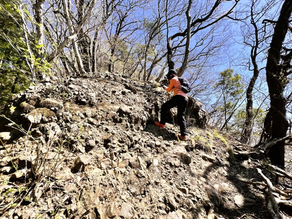 この辺りは岩山を登って行く方向が「正解」という、なんとも厳しい道のりなのです。
