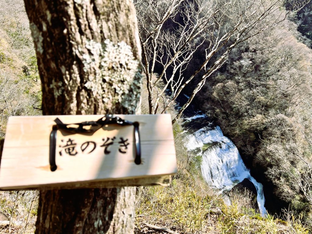 分岐から15分ほど進んだところに「滝のぞき」の看板がありました。