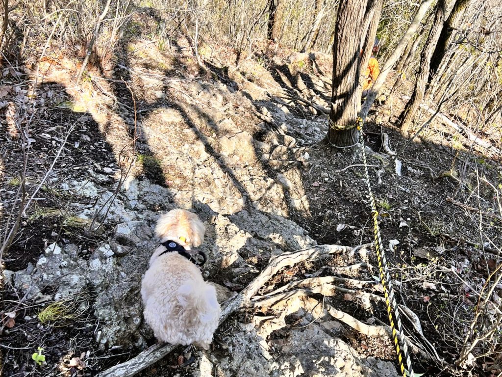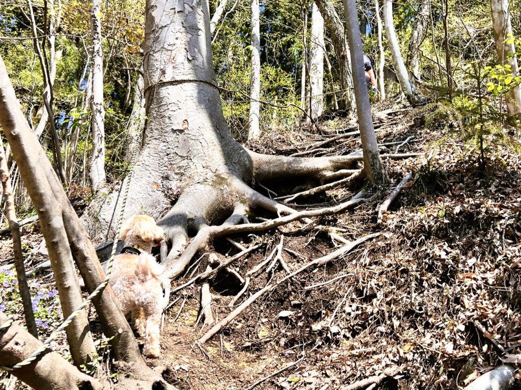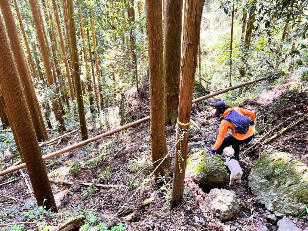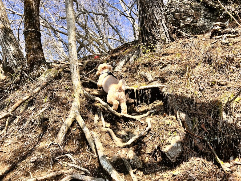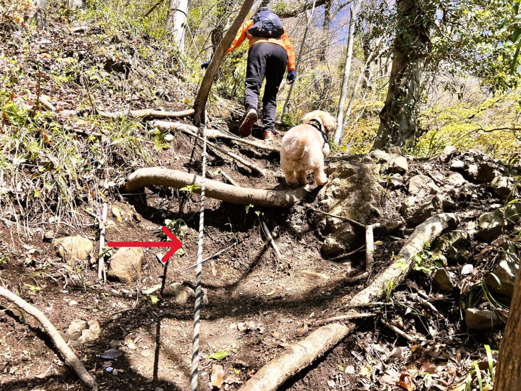まだまだ普通の山道ですが、勾配が厳しいのでロープがあって、とても助かりました。
