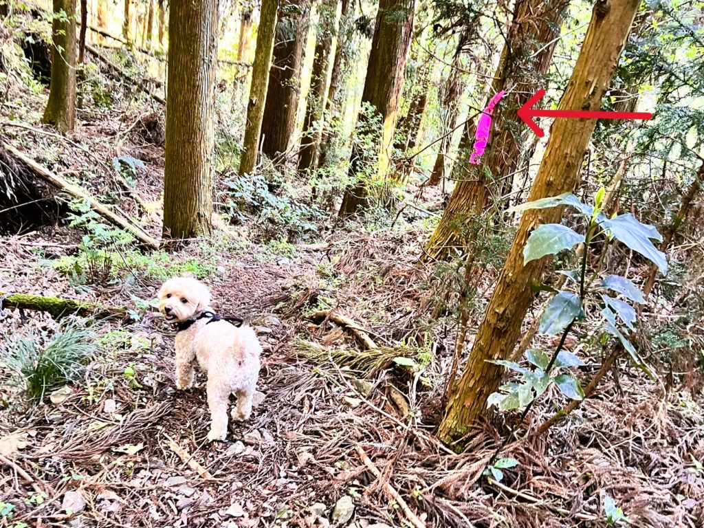 わかりずらい個所もあり、ピンクテープを見失わないように注意しながら進みます。
