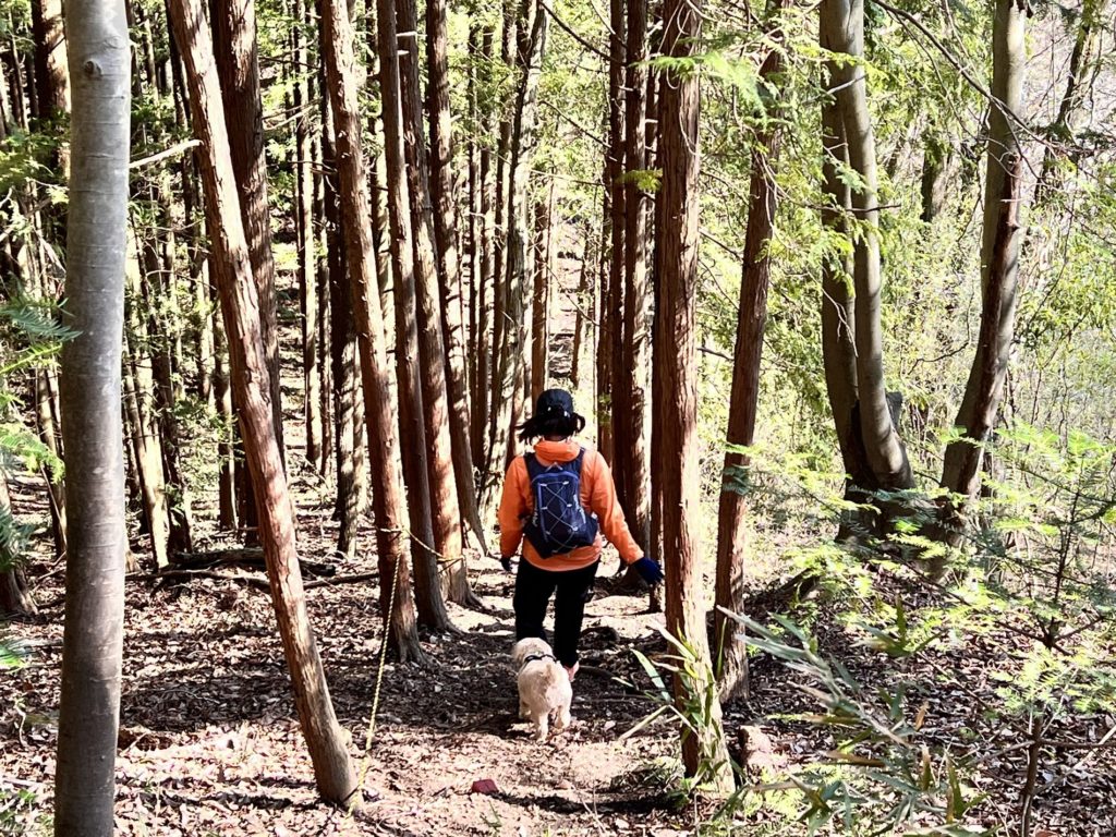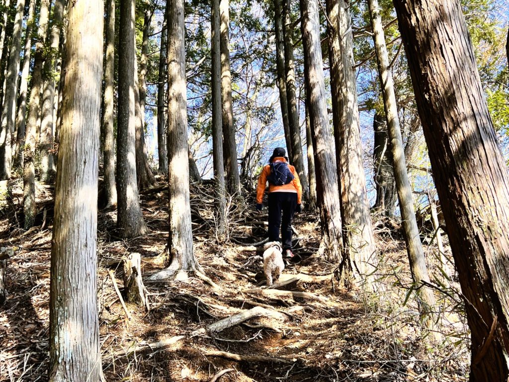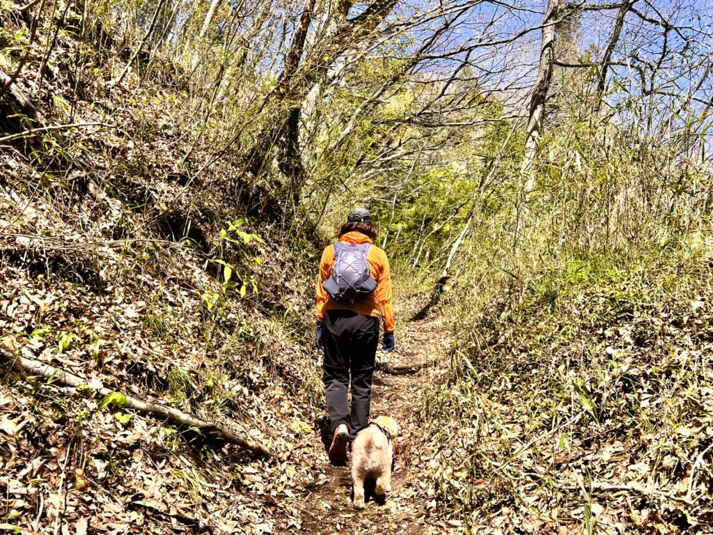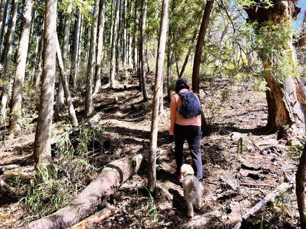 チクチクするマツの枝葉がなければ、山道は楽しい様子です。
