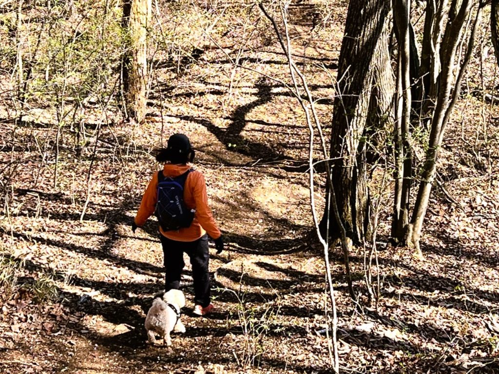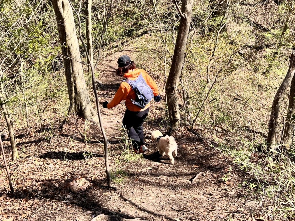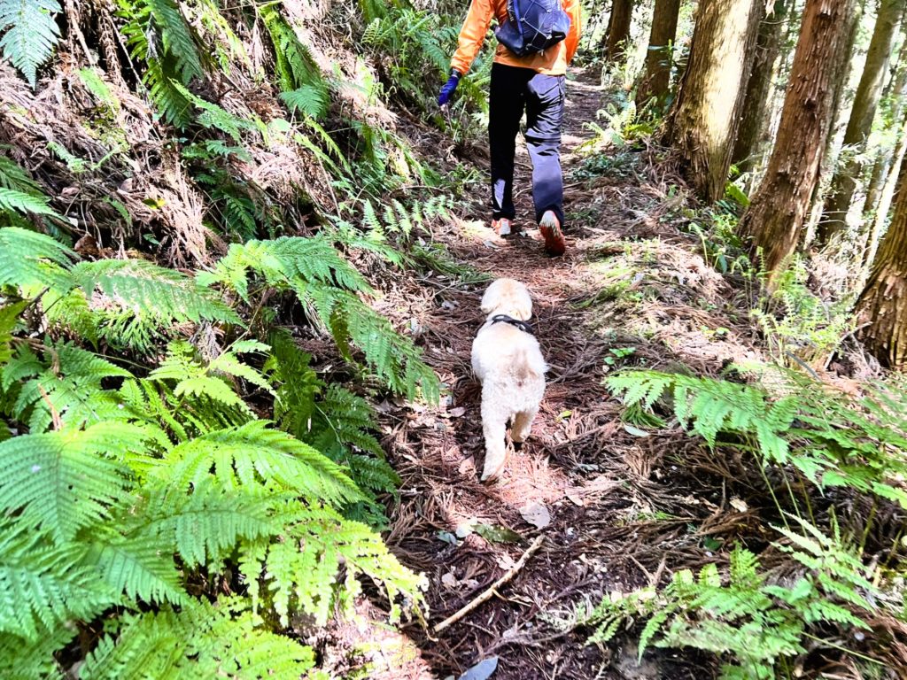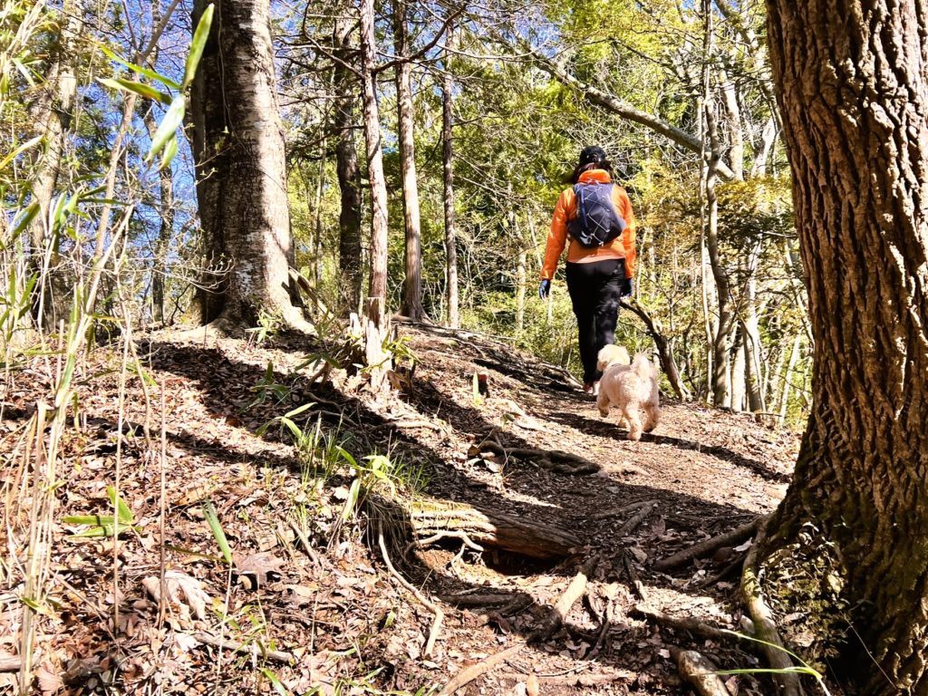 チクチクするマツの枝葉がなければ、山道は楽しい様子です。