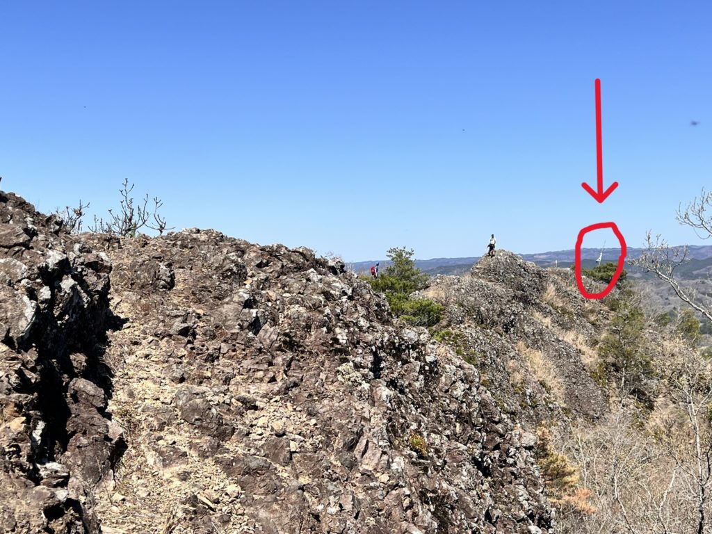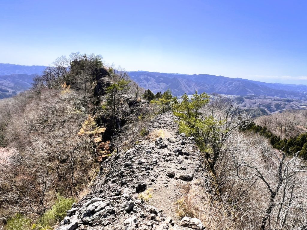 「茨城のジャンダルム」とは、見ての通り『ゴジラの背』のような、ゴツゴツした岩が連続する細く切れ落ちた尾根道。