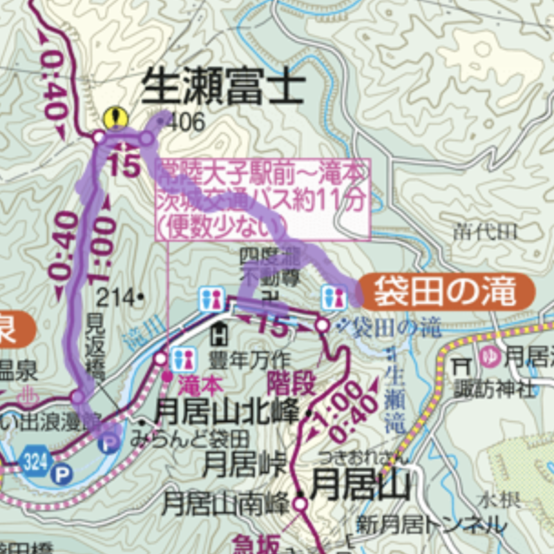 ここからは「山と高原地図」に記載のないルートとなりますが、「袋田の滝」の近くに出られると聞いて、行ってみることにしました。