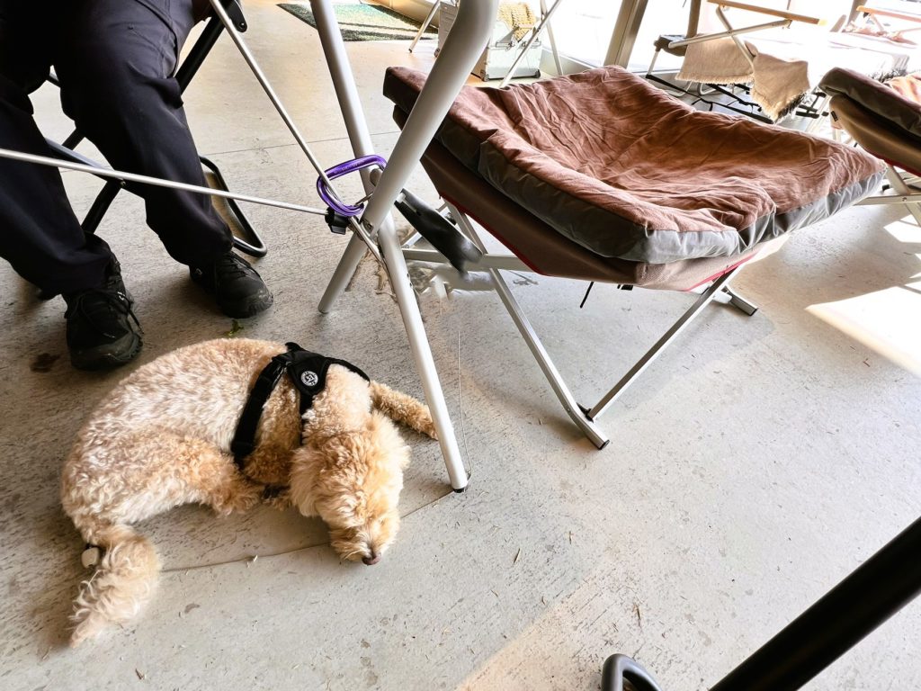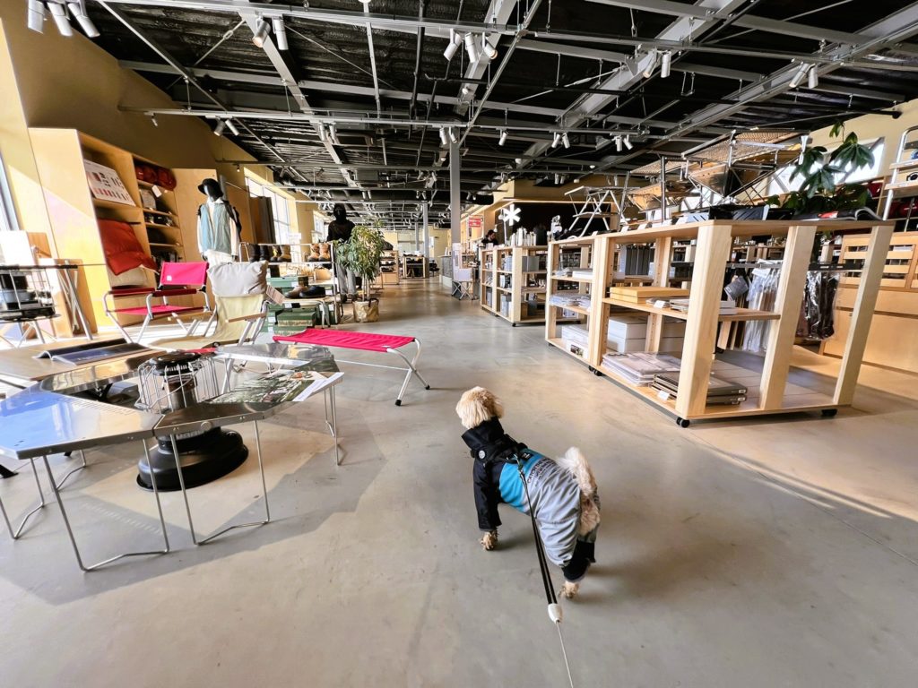 広い店内にはキャンプ用品がズラッと並び、ワンちゃんグッズもありました。