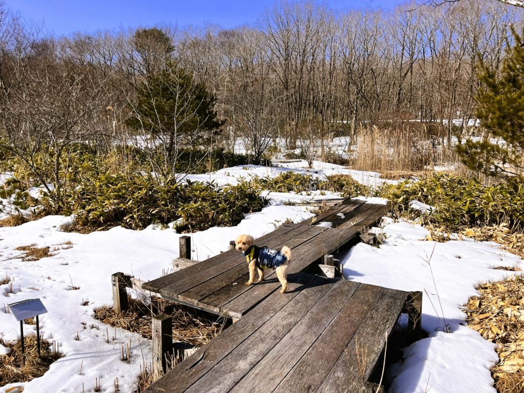 木道が続く「湿地園」は、雪で覆われていましたが、歩いてみるとかなり広いです。