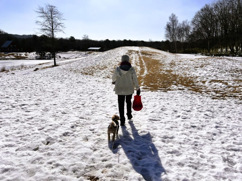 でもこの時は、中途半端に雪解けし、出入口などドロドロの箇所が多かったので、遊んでいるワンちゃんは少なかったです。