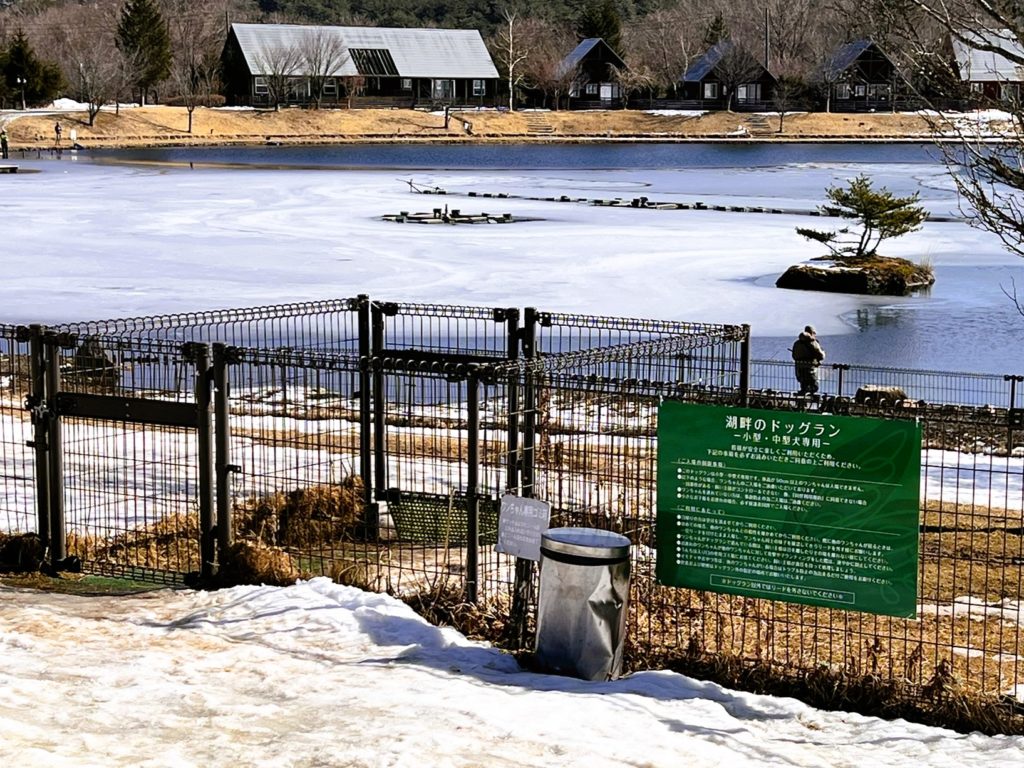 メインは「湖畔のドッグラン」。犬種によって2つのエリアに分かれています。