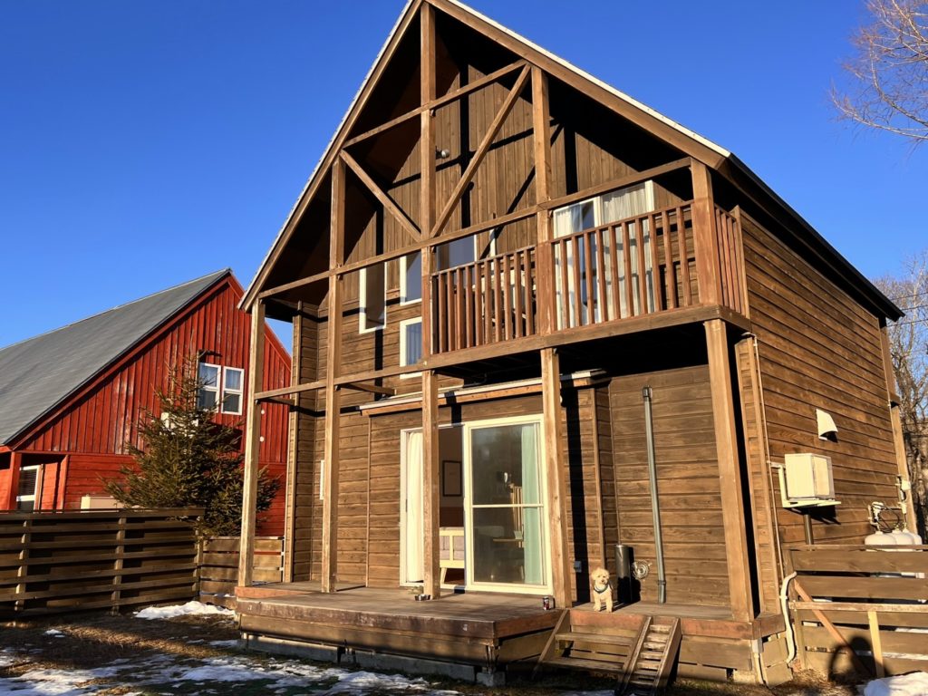 2人と1ワンでは、贅沢過ぎる2階建てのコテージです