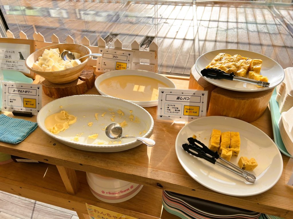 蒸し鶏とデザート類はいつも同じでしたが、これ全部『ワンちゃん好きなやつ』だと思われます。