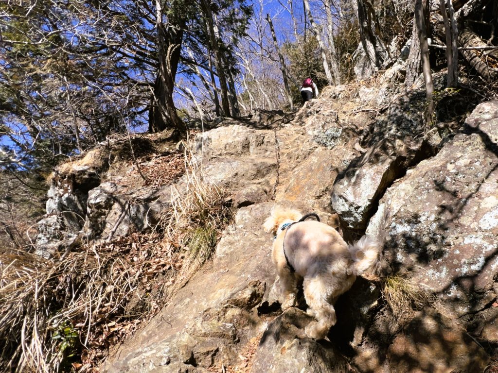 注:この「直登コース」は、険しい岩場が続きます。犬登山にはオススメできません。