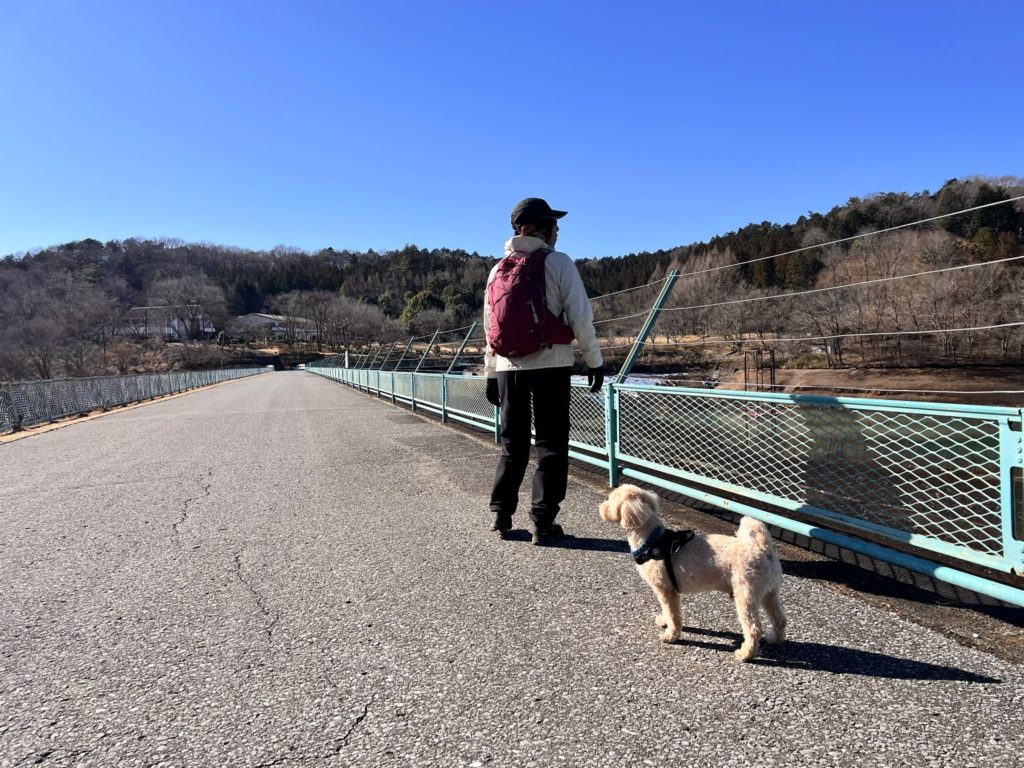 このダムの上からは、これから目指す「古賀志山」がキレイに見えます。
