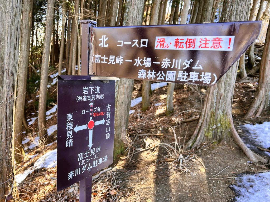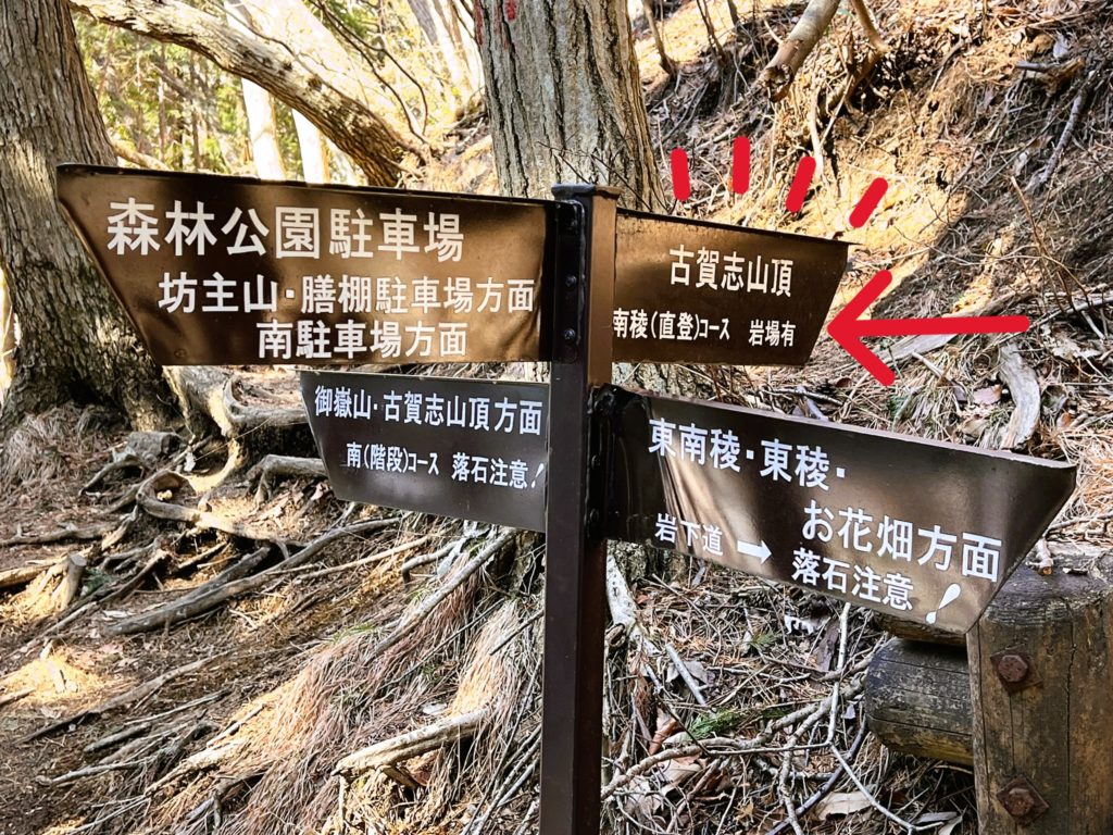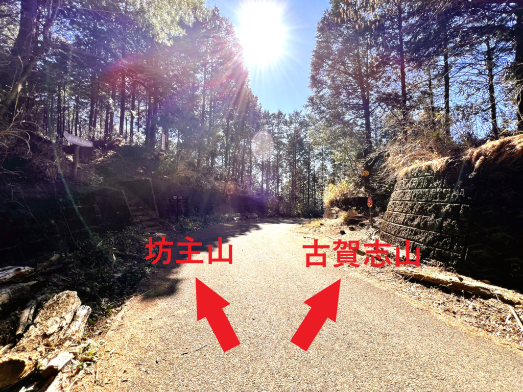少し進むと「坊主山」と「古賀志山」への分岐点がありました。