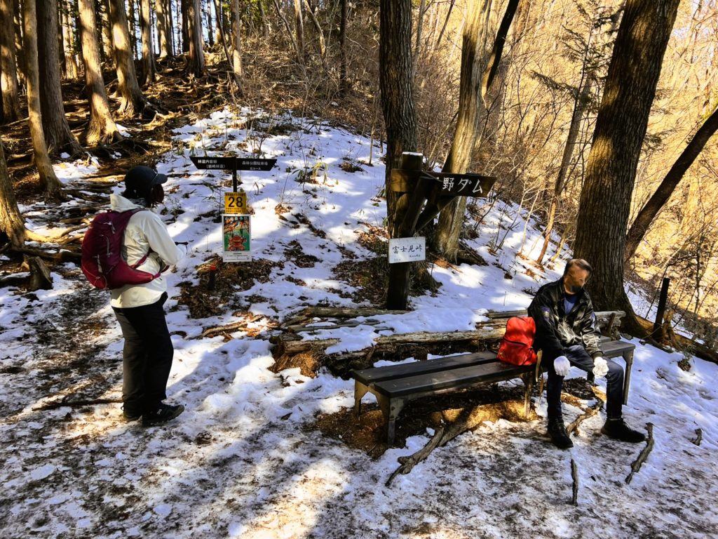 雪もなくなり、おだやかなハイキングコースをしばらく進むと「二枚岩」方面への分岐点。